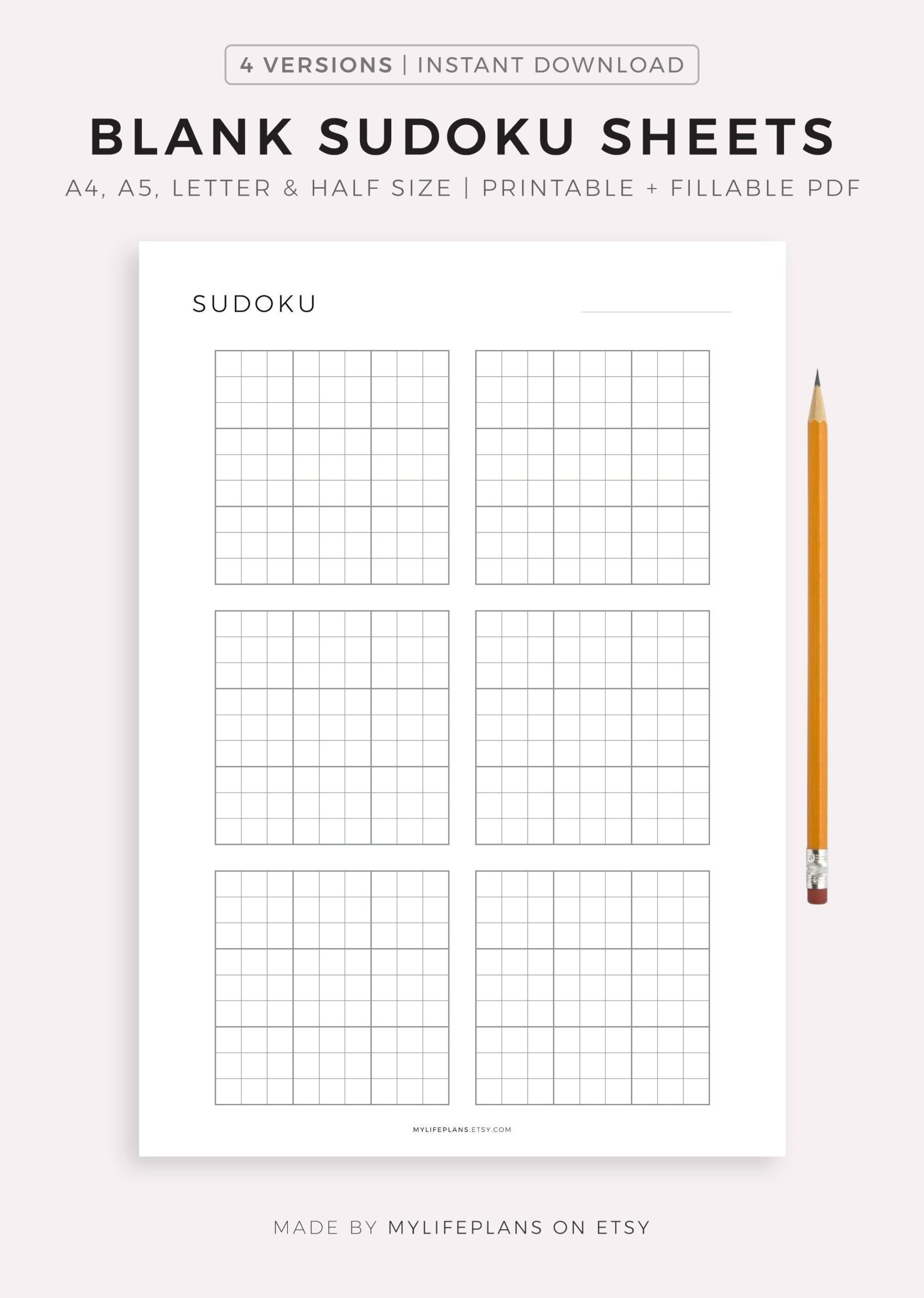 Printable Blank Sudoku Sheets Sudoku Grid Template Instant Download PDF Etsy UK