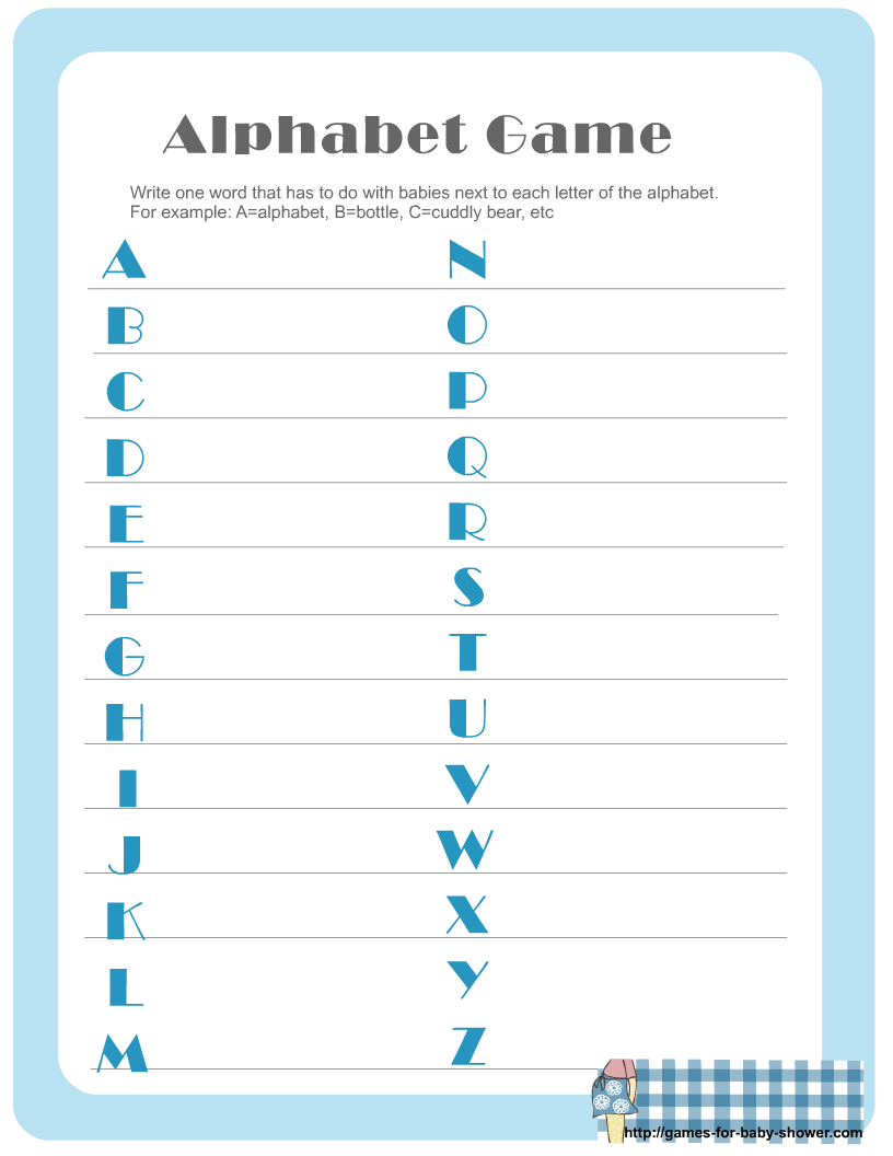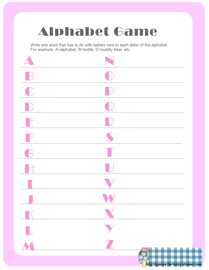 Free Printable Baby Shower Alphabet Game