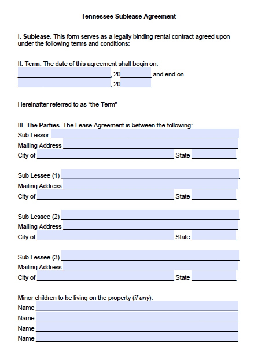 Blank Tennessee Rental Lease Agreement Printable