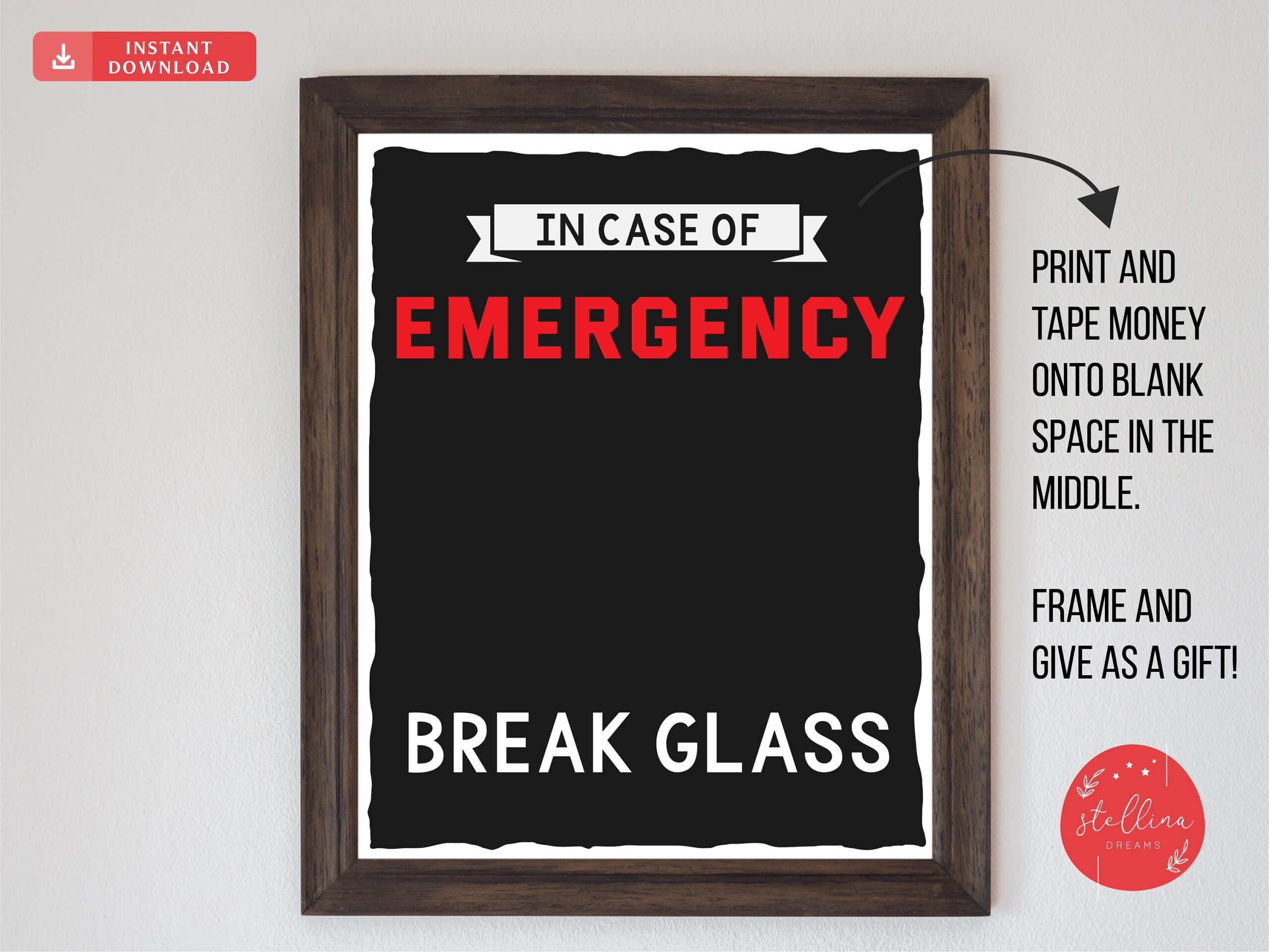 DIGITAL DOWNLOAD In Case Of Emergency Break Glass Printable Art Money Cash Humorous Home Decor Christmas Graduation Baby Shower Gift Etsy