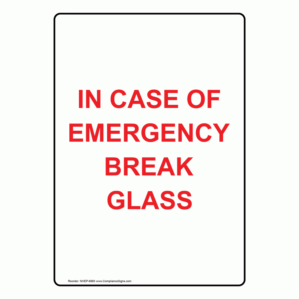 White Glow Vertical Sign In Case Of Emergency Break Glass
