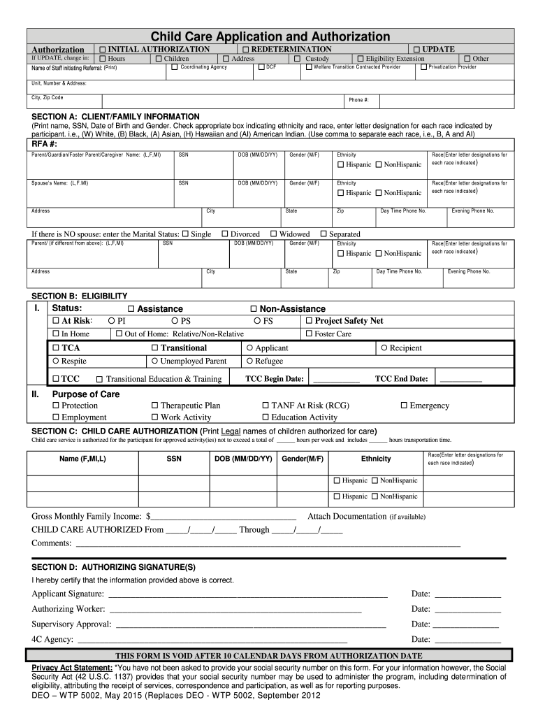 Child Care Authorization Form Fill Online Printable Fillable Blank PdfFiller