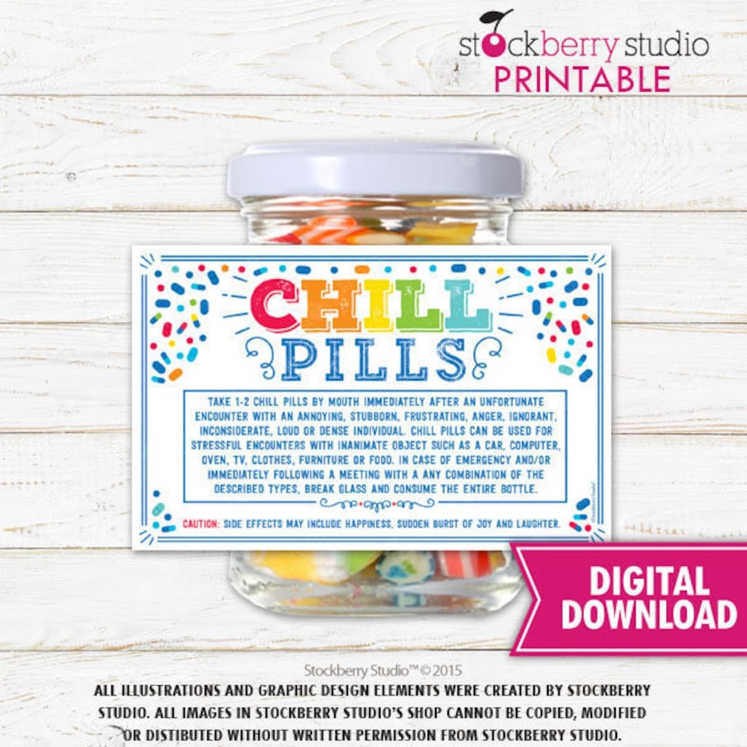 Chill Pill Label Printable Prescription Label Funny Coworker Gag Gift Office Gift Boss Gift Doctor Nurse Birthday Gift Staff Christmas Gift Etsy de