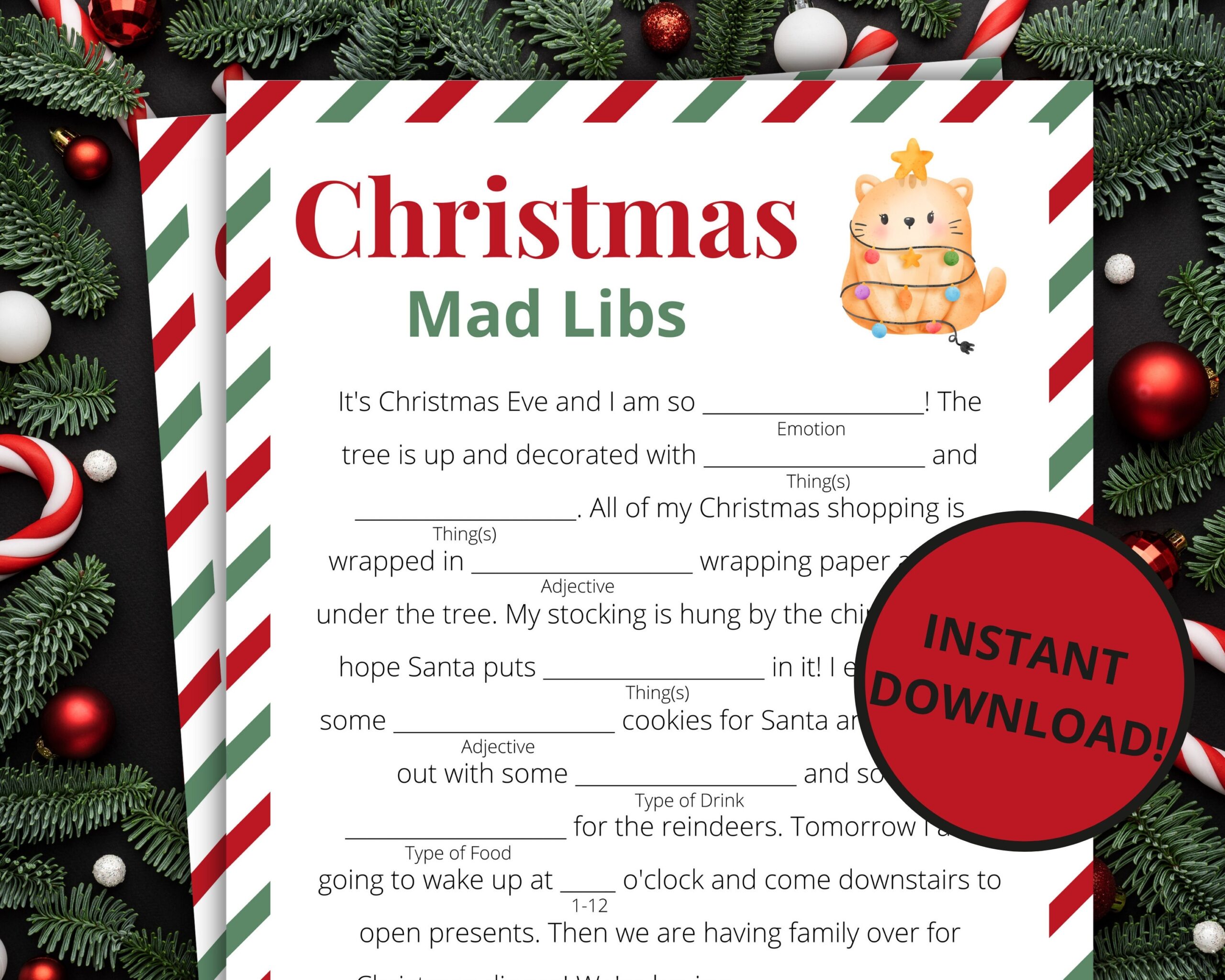 Get ready to spread some holiday cheer with our Christmas Mad Lib Free Printable. Download, print, and enjoy a hilarious and heartwarming activity that will bring joy to your gatherings. Happy holidays and happy Mad Libbing!