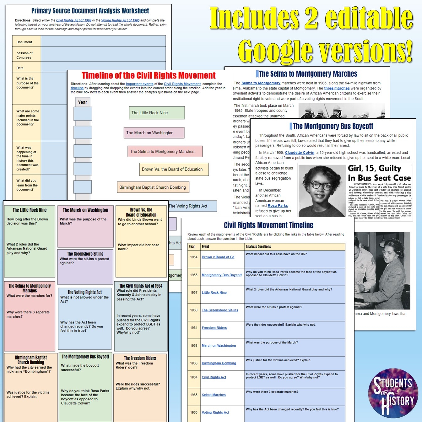 Free Civil Rights Packet Timeline Of Events Leading To The Civil Rights Movement Homeschool Den