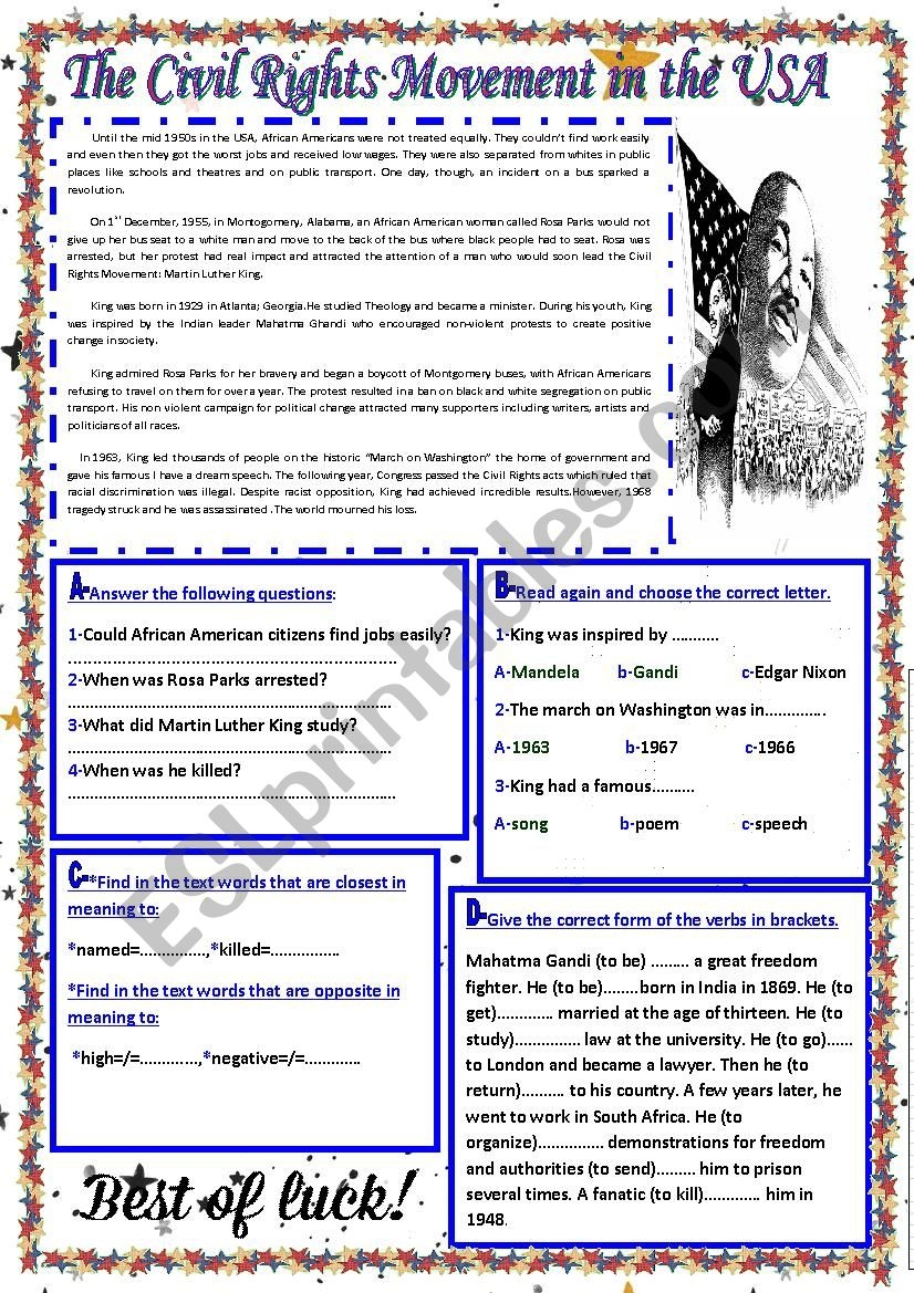 The Civil Rights Movement In USA ESL Worksheet By Sasuna