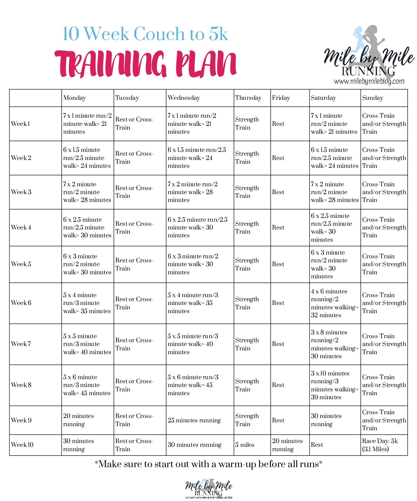 10 Week Couch To 5k Training Plan Mile By Mile Worksheets Library