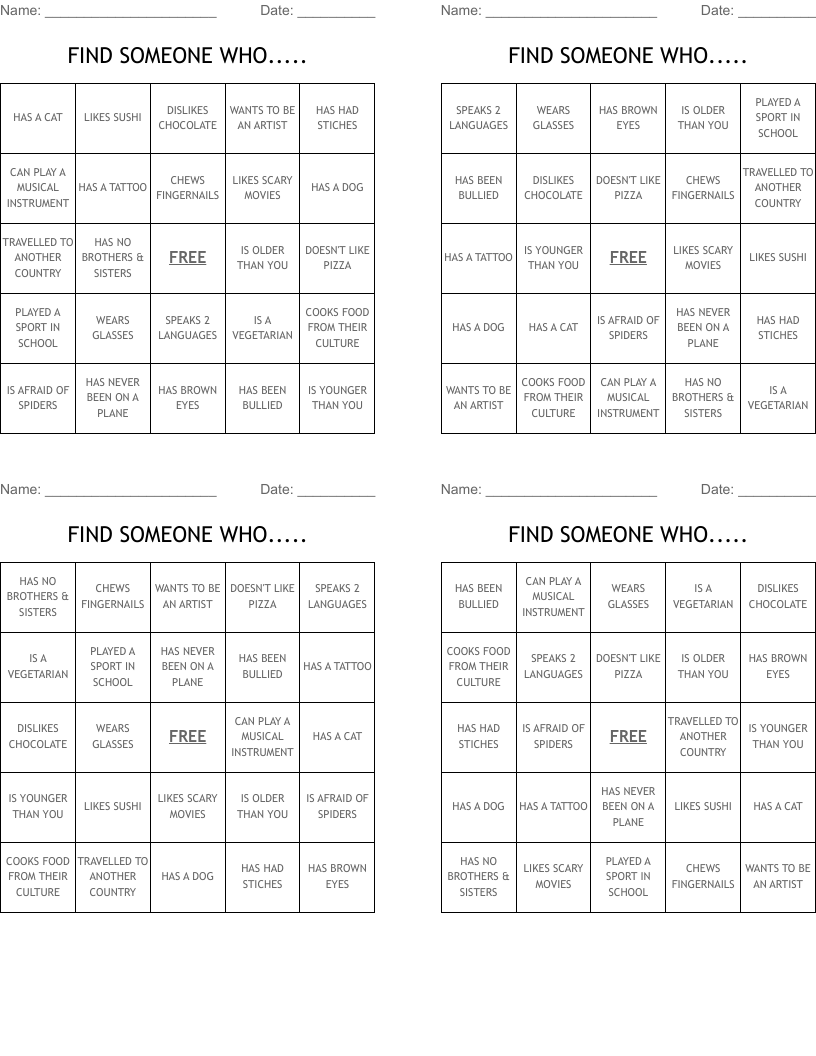 Find Someone Who Free Printable