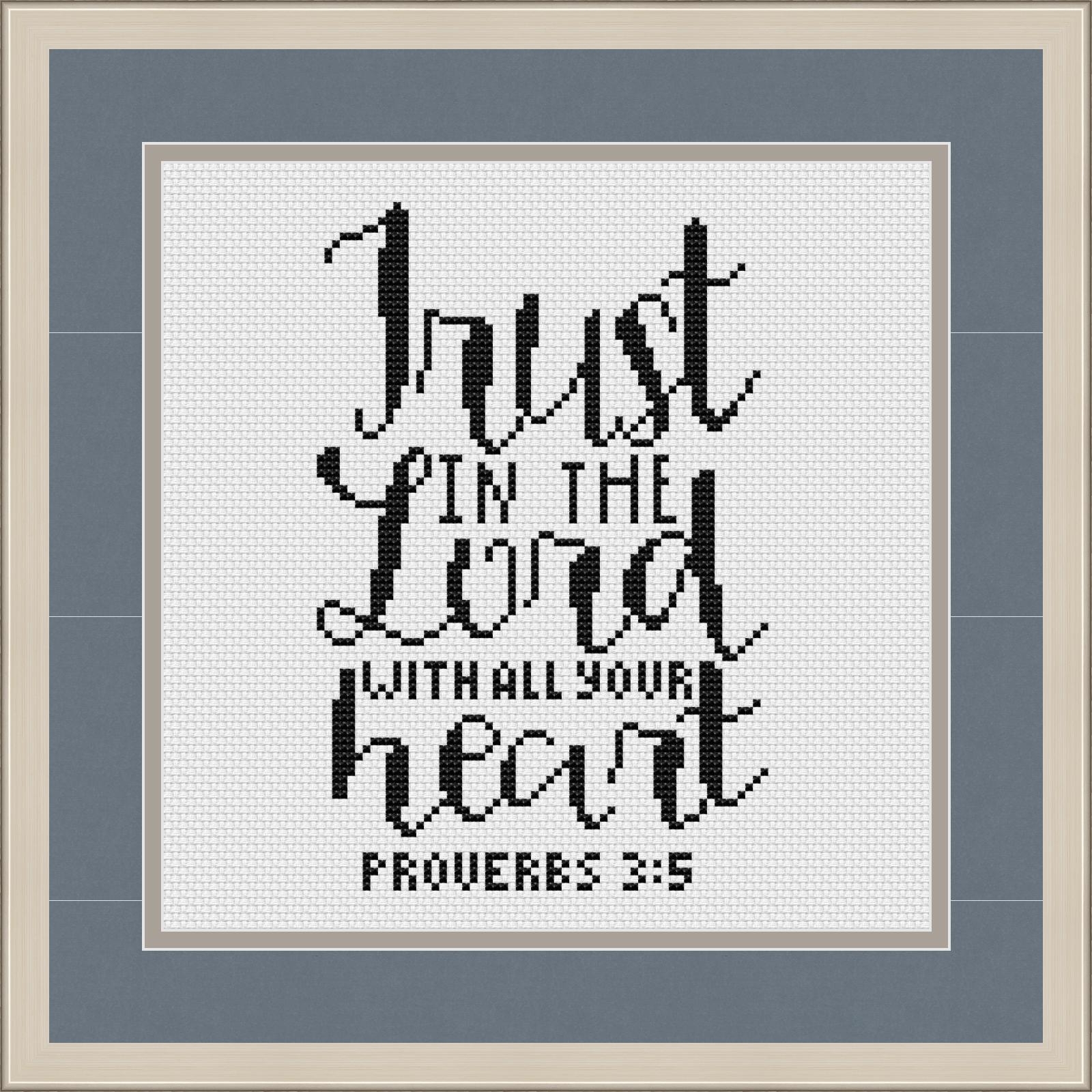 Bible Verse Cross Stitch Pattern Trust In The Lord With All Inspire Uplift