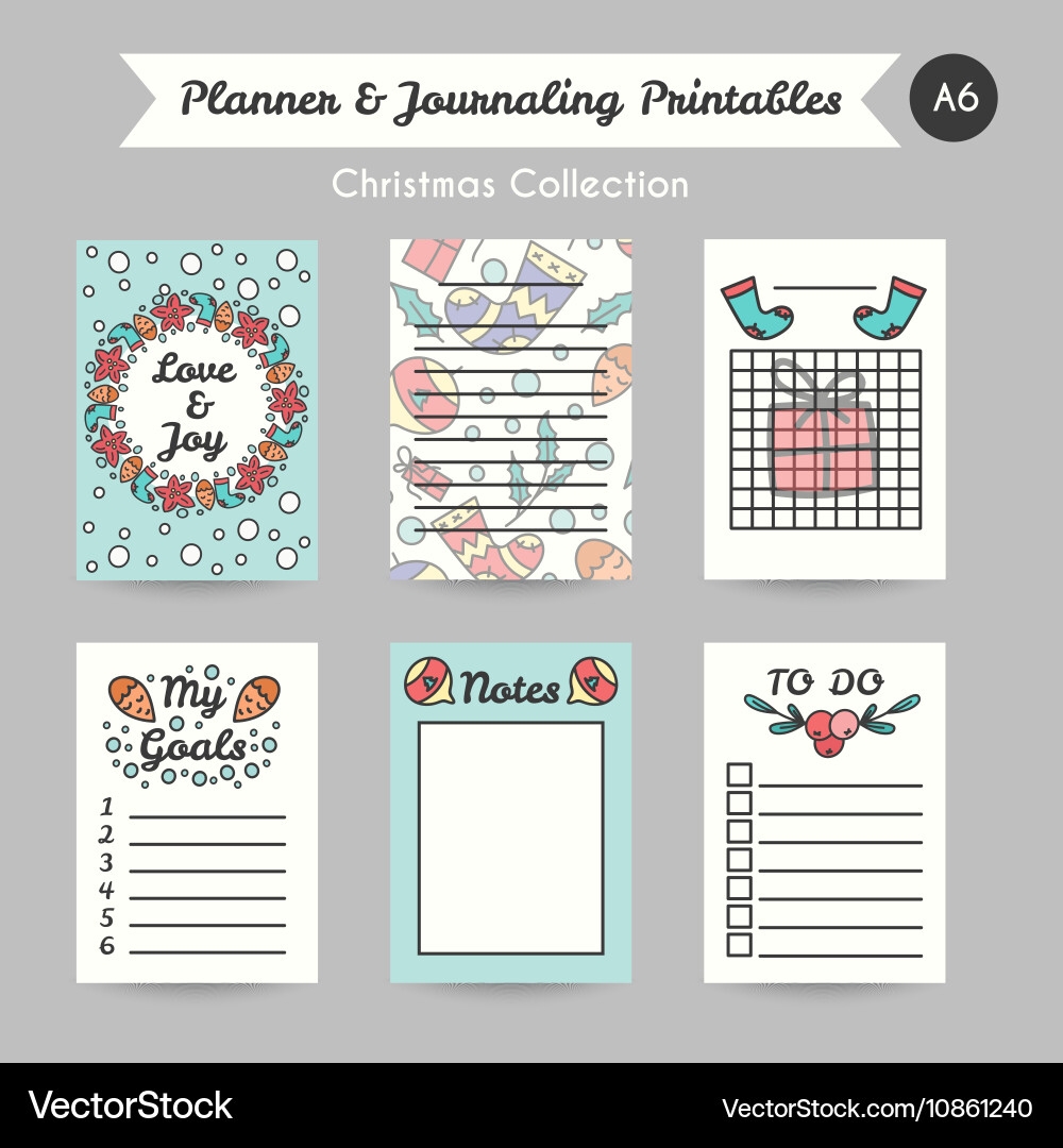 Christmas Printable Journaling Cards Line Style Vector Image