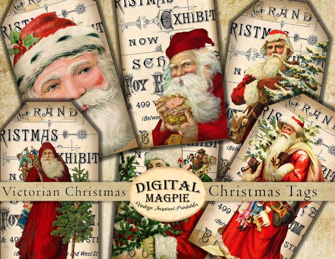 Victorian Christmas Gift Tags Santa Children Vintage Printable Hang Tags Digital Download Instant Download Scrapbook Journal Ephemera Etsy UK
