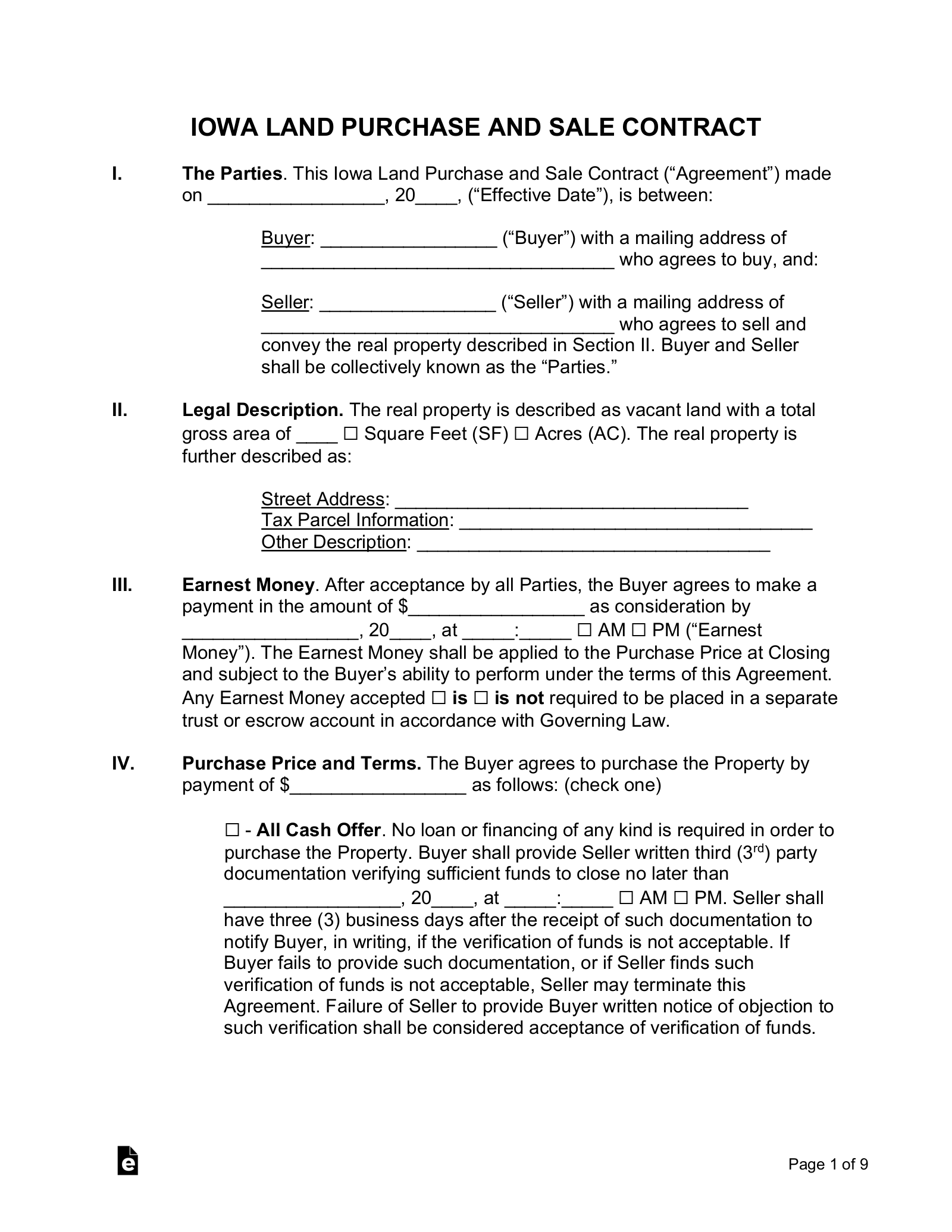 Free Iowa Land Contract Template PDF Word EForms