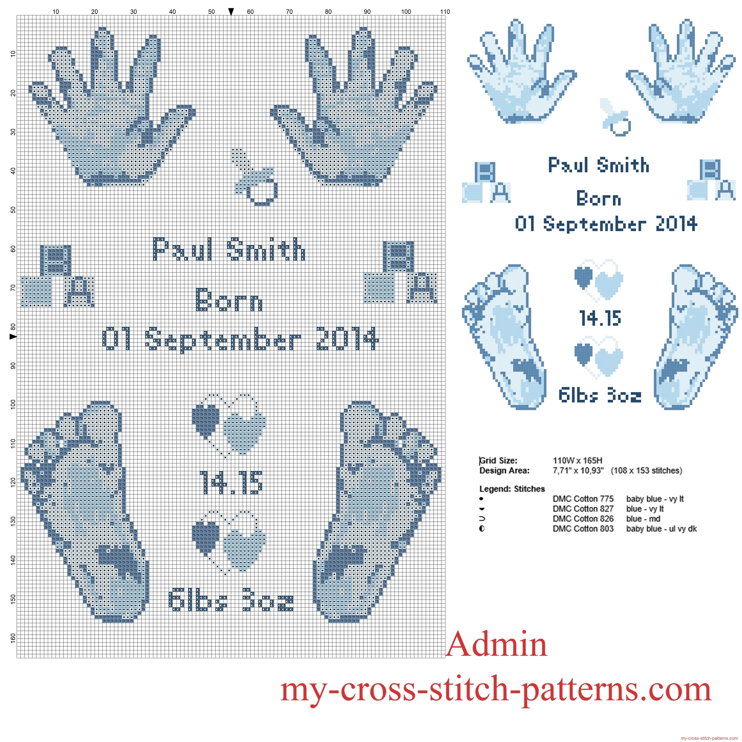Cross Stitch Pattern Birth Record Male Baby Feet And Hands Prints Free Download Free Cross Stitch Patterns Simple Unique Alphabets Baby