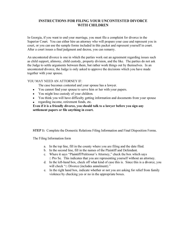 Gwinnett County Divorce Packet Fill Online Printable Fillable Blank PdfFiller
