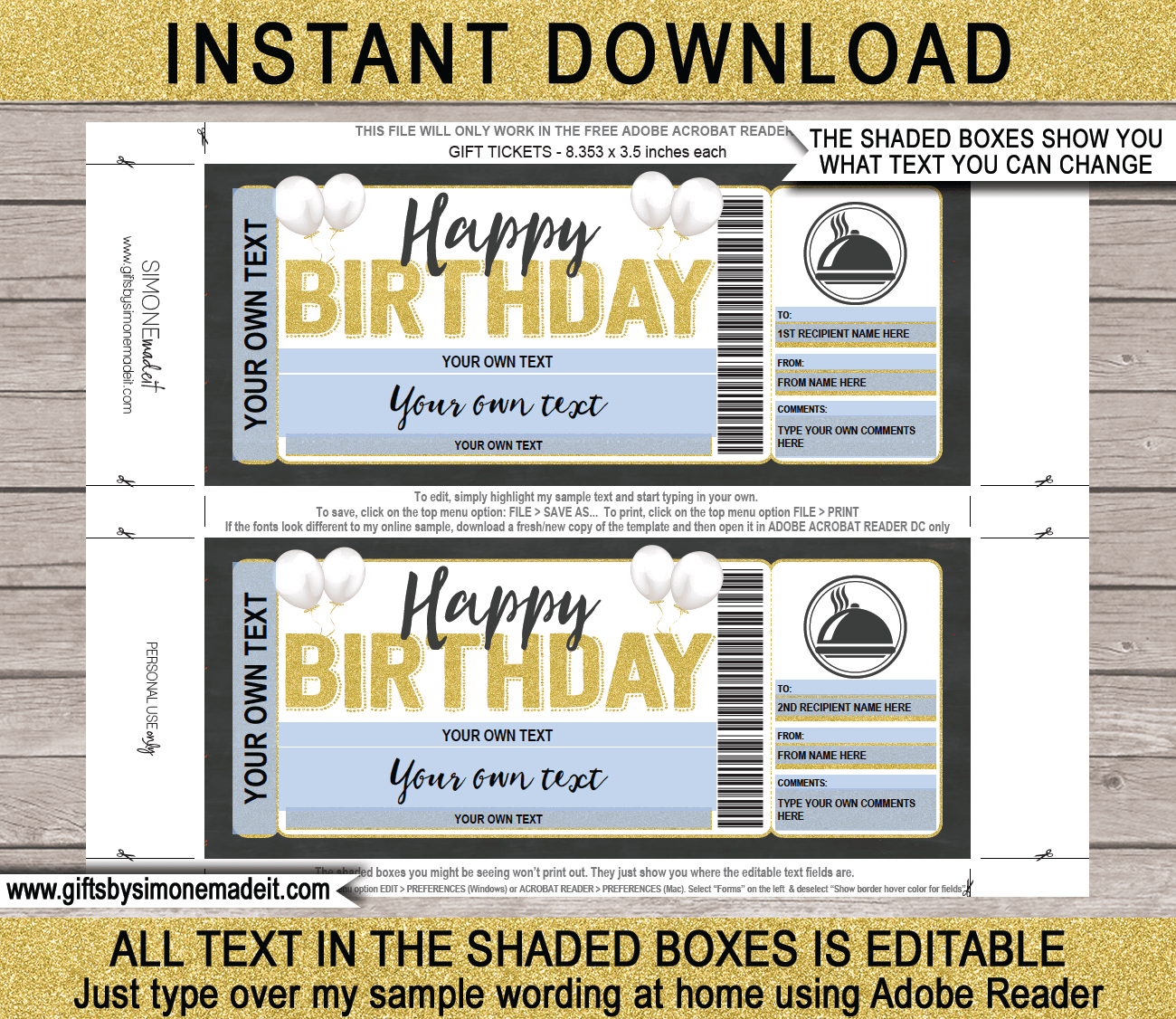 Birthday Meal Voucher Template Restaurant Dinner Gift Certificate Ticket