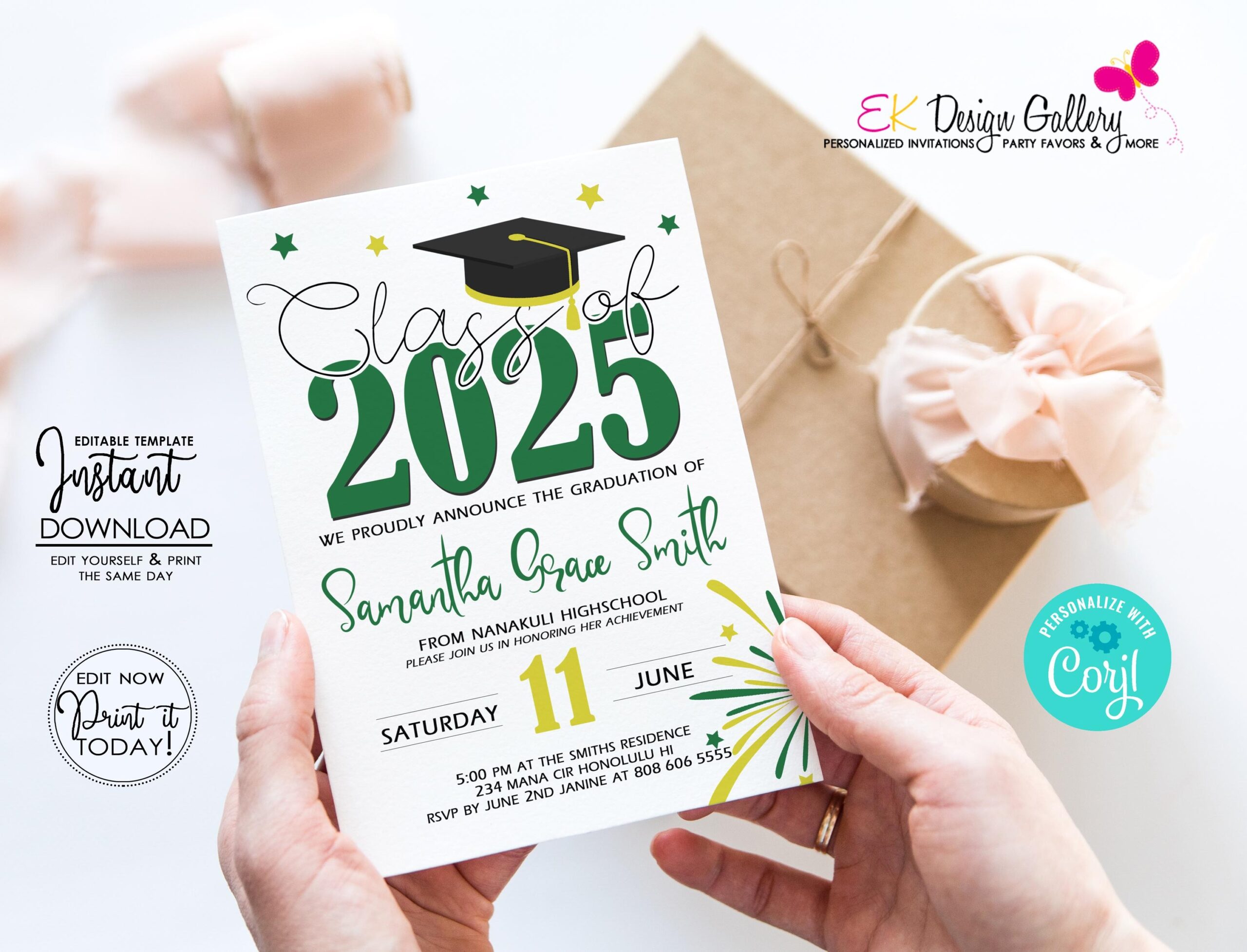 INSTANT DOWNLOAD Graduation 2025 Invitation Green Yellow Invite Graduation Party Invitation Class Of 2025 Party Corjl EDITABLE Template Etsy Canada