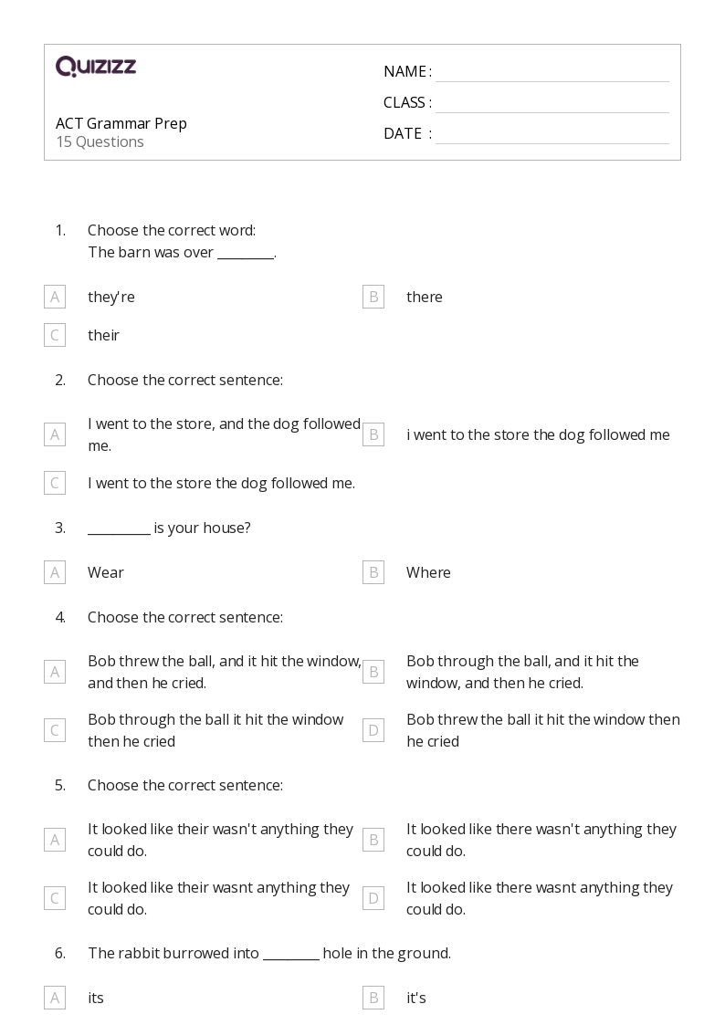 Free Printable Grammar Worksheets For 11th Grade