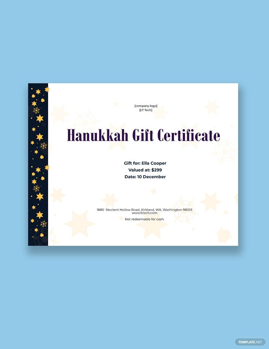 Hanukkah Gift Certificate Template In Photoshop Word Publisher Google Docs Pages Download Template