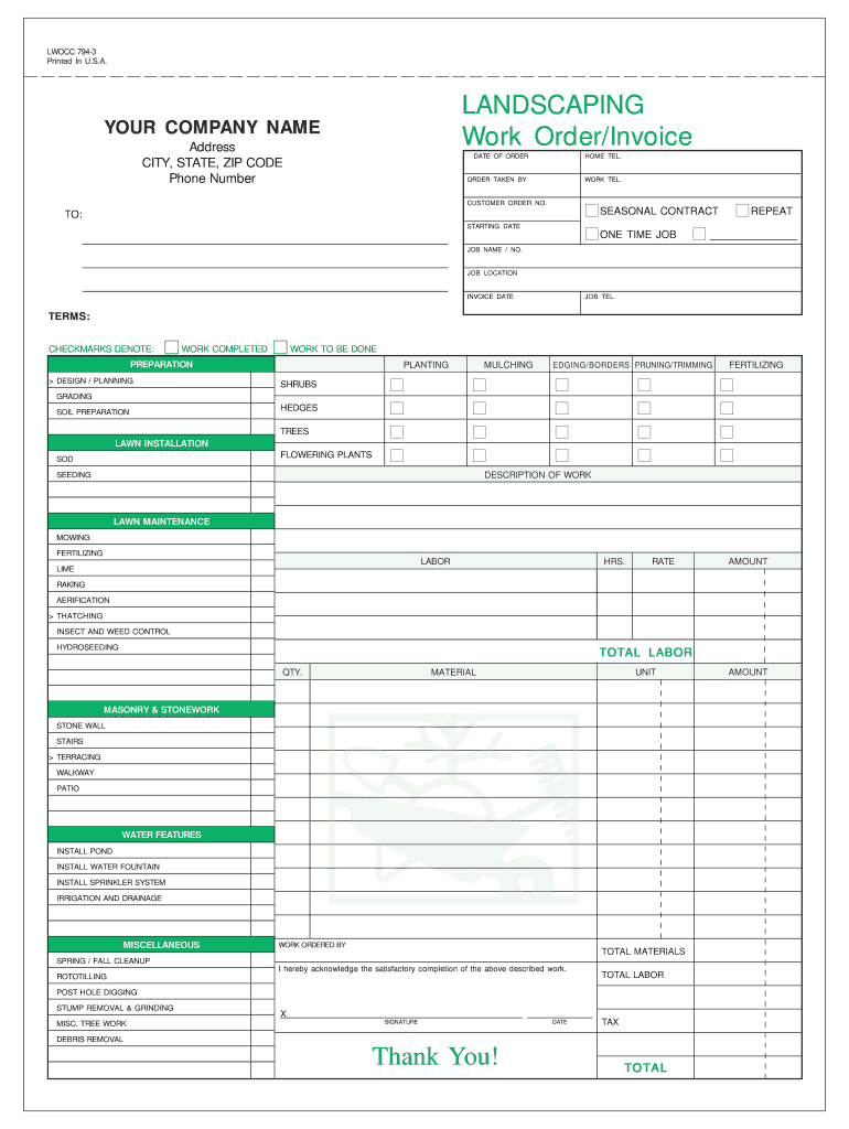 Free Printable Lawn Care Invoices