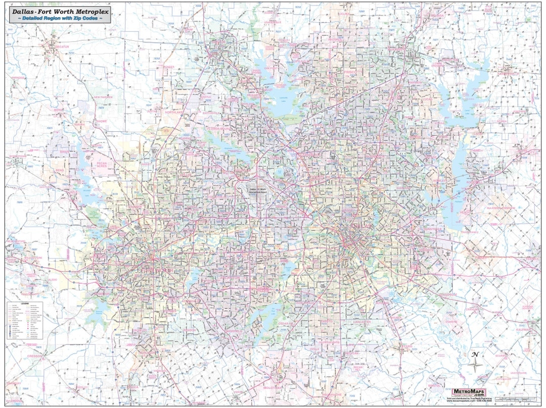 Dallas ft Worth Metroplex Detailed Region Wall Map 44 x58 W zip Codes Etsy