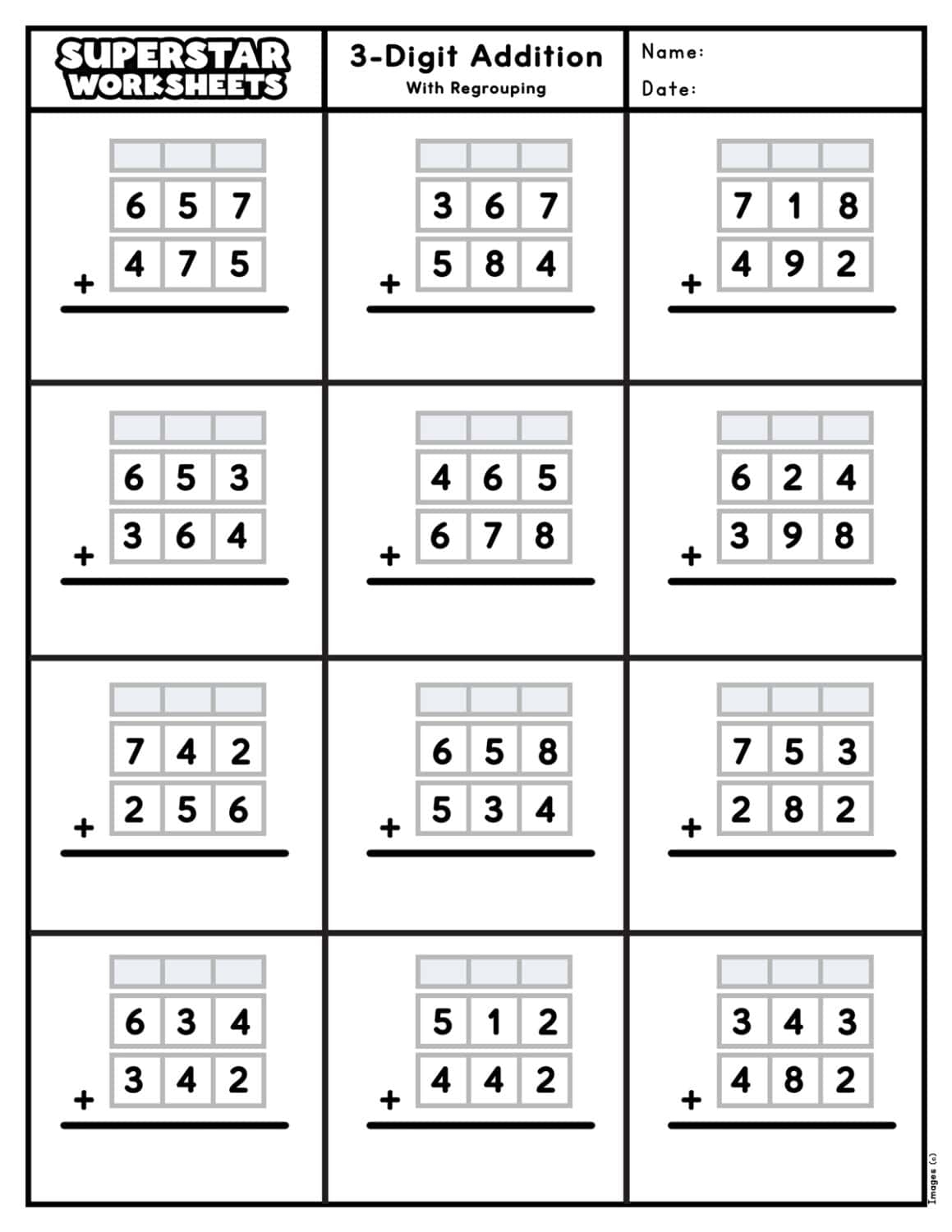 3 Digit Addition Worksheets Superstar Worksheets