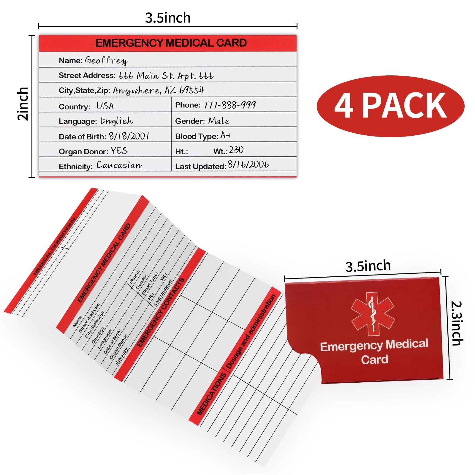 Emergency ID For Medical Information Red Medical Condition And Emergency Contact ID Wallet Card Pocket Size Medication List And Medical Cards For Janitors Red Amazon de Fashion