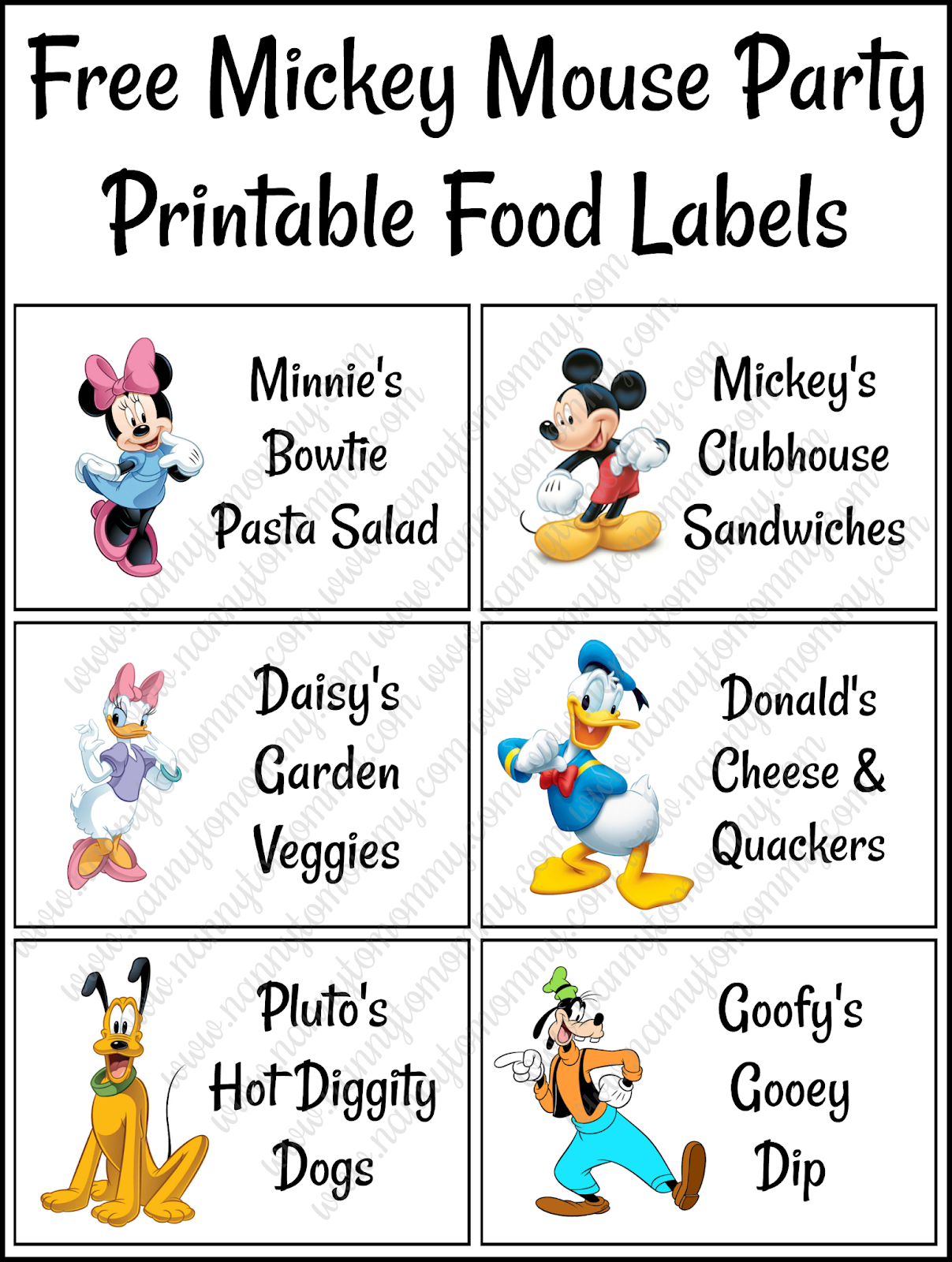 Free Printable Mickey Mouse Food Labels