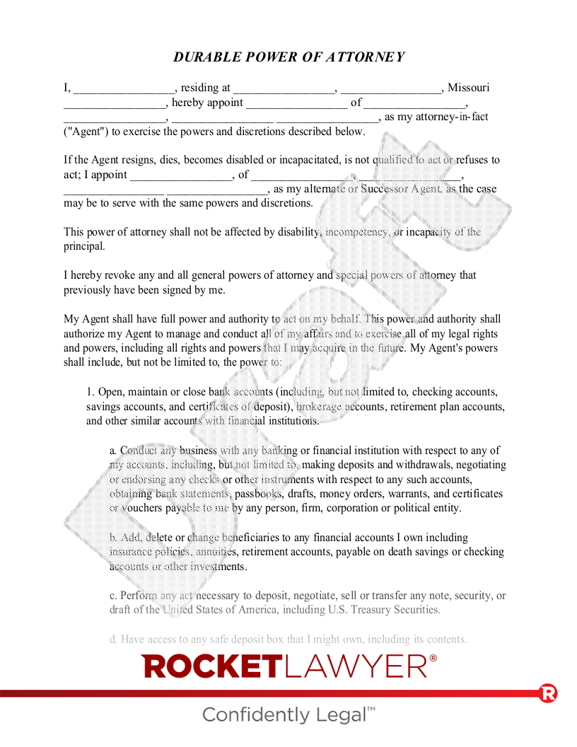Free Missouri Power Of Attorney Template Rocket Lawyer