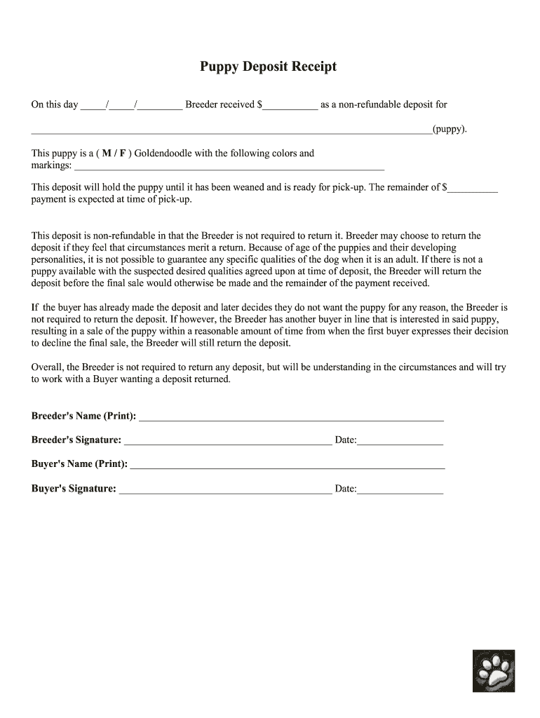 Puppy Deposit Receipt Fill Online Printable Fillable Blank PdfFiller