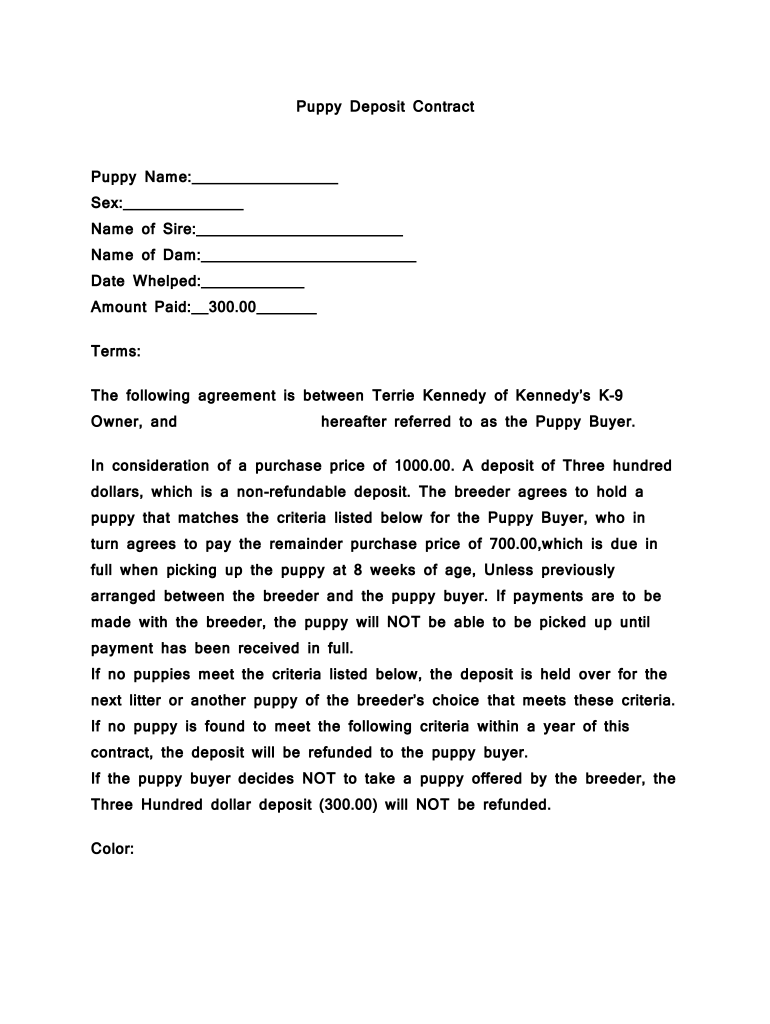 Puppy Breeder Deposit Fill Online Printable Fillable Blank PdfFiller