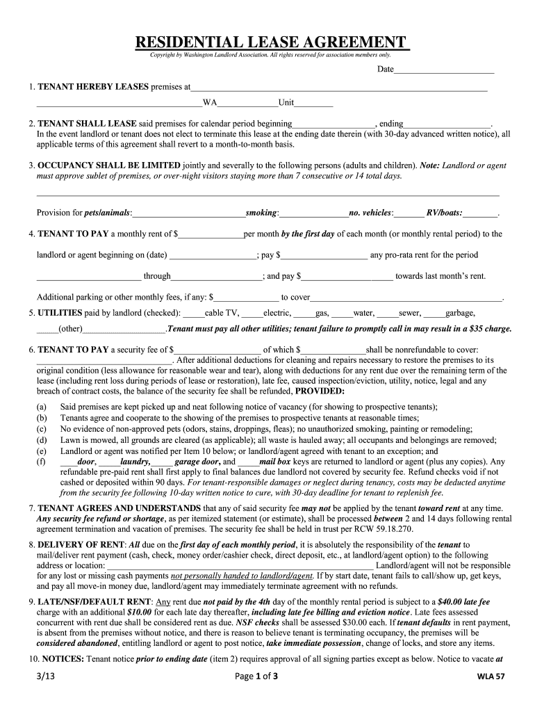 Rental Agreement Washington State Fill Online Printable Fillable Blank PdfFiller