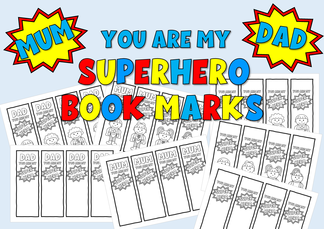 MUM DAD You Are My Superhero Bookmarks Mother s Father s Day Activity Teaching Resources