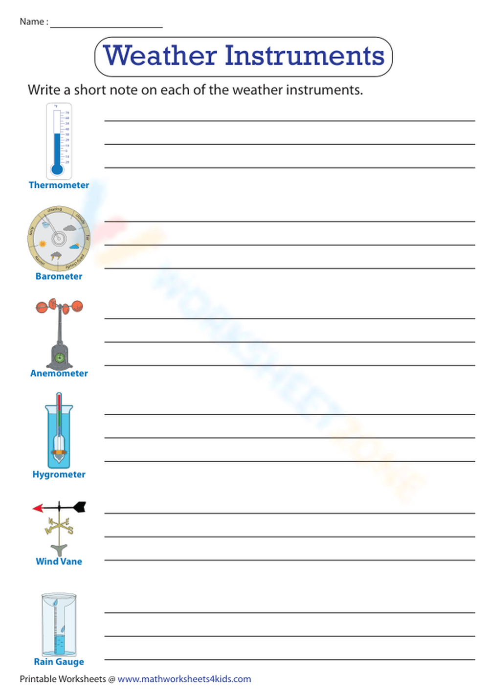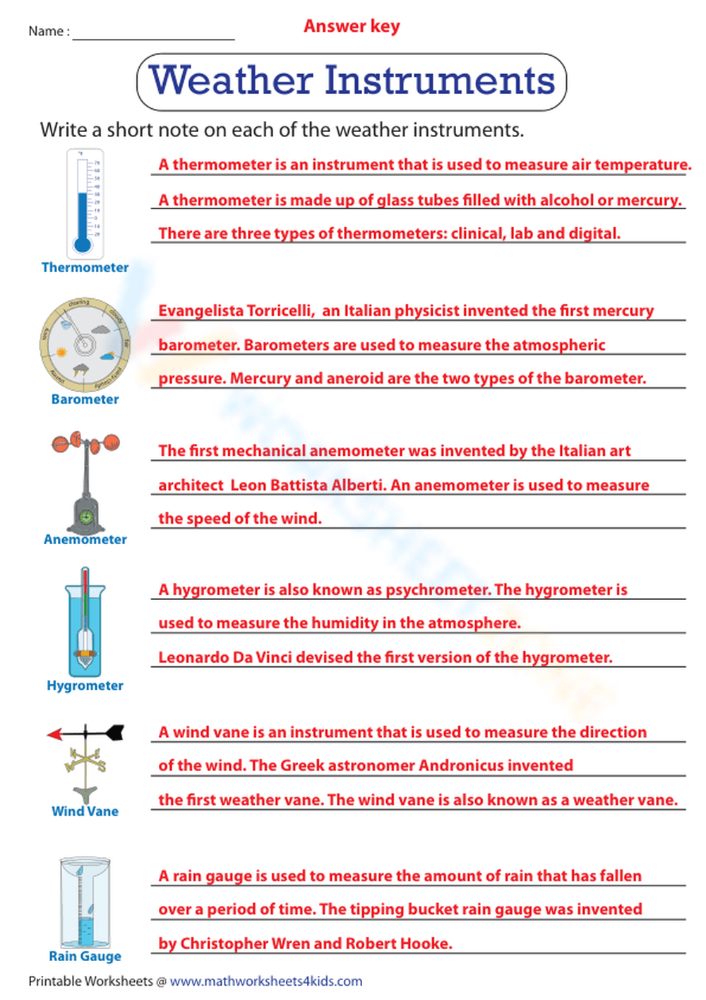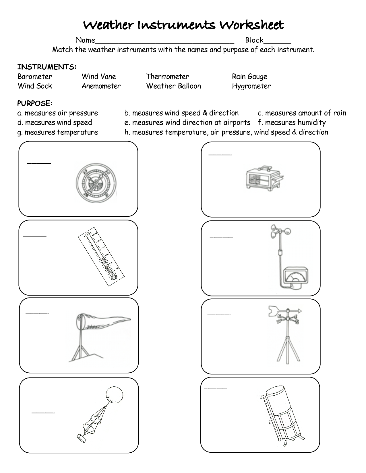 Free Printable Weather Instruments Worksheets