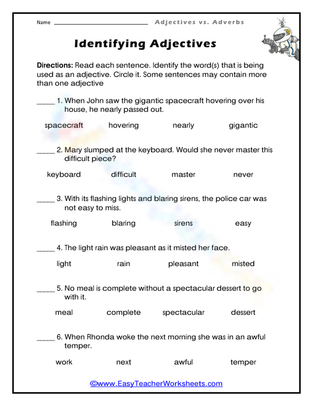 Identifying Adjectives Worksheet Worksheets Library