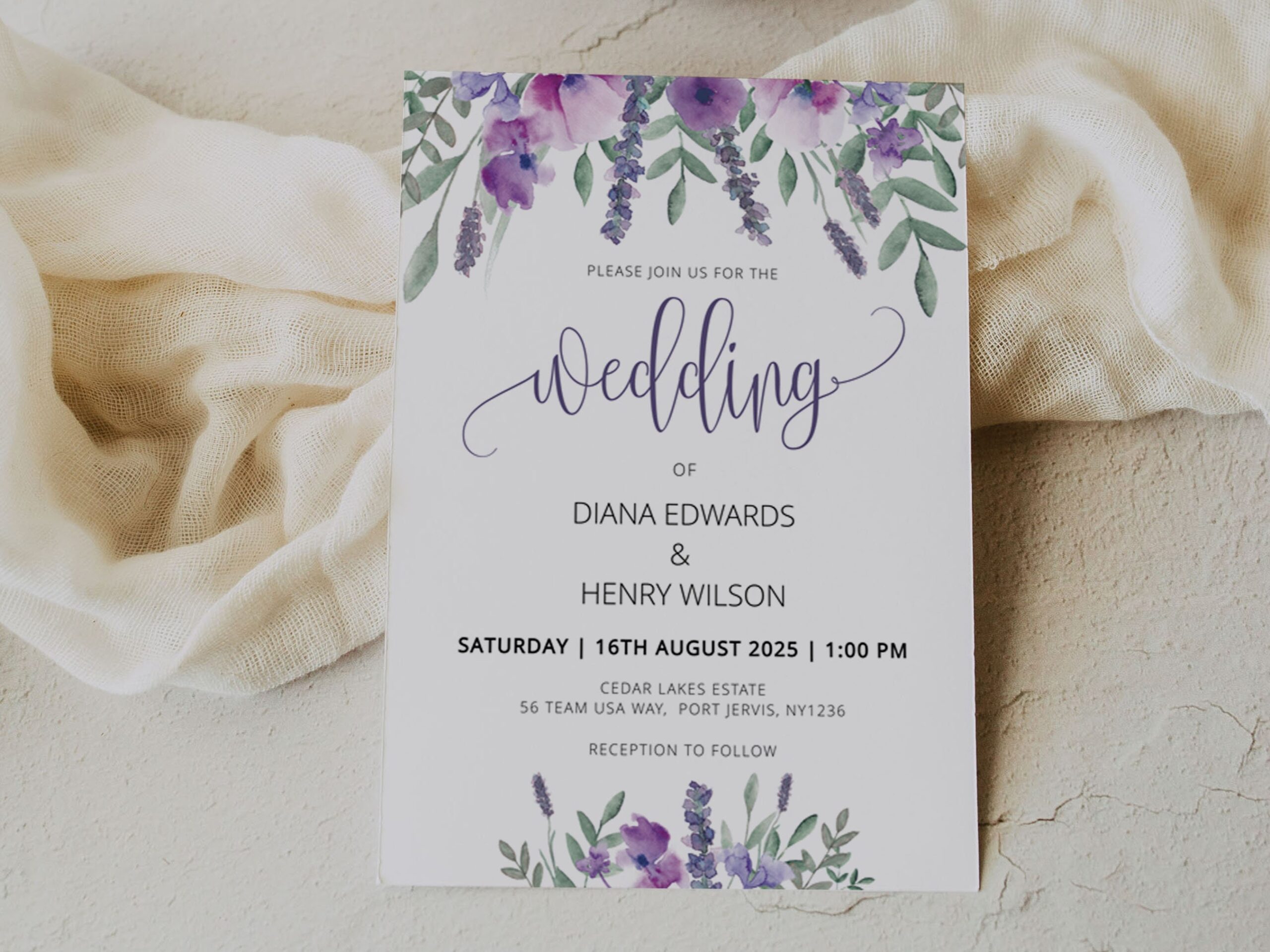 PURPLE Wedding Invitation Template Printable Lavender Floral Invite Card Digital Download Etsy