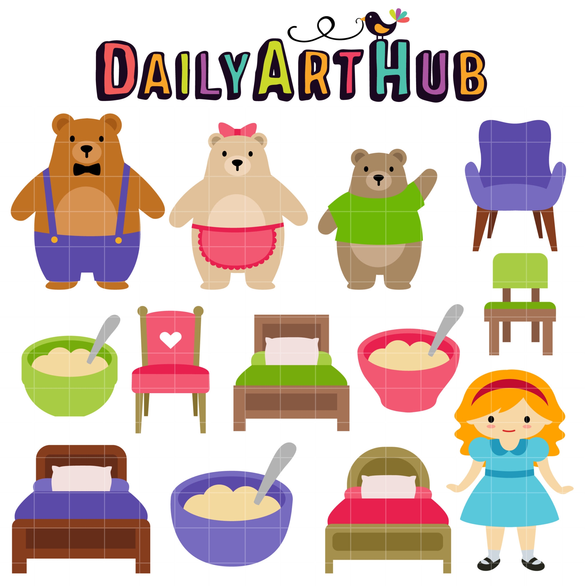 Goldilocks And The Three Bear Clip Art Set Daily Art Hub Graphics Alphabets SVG