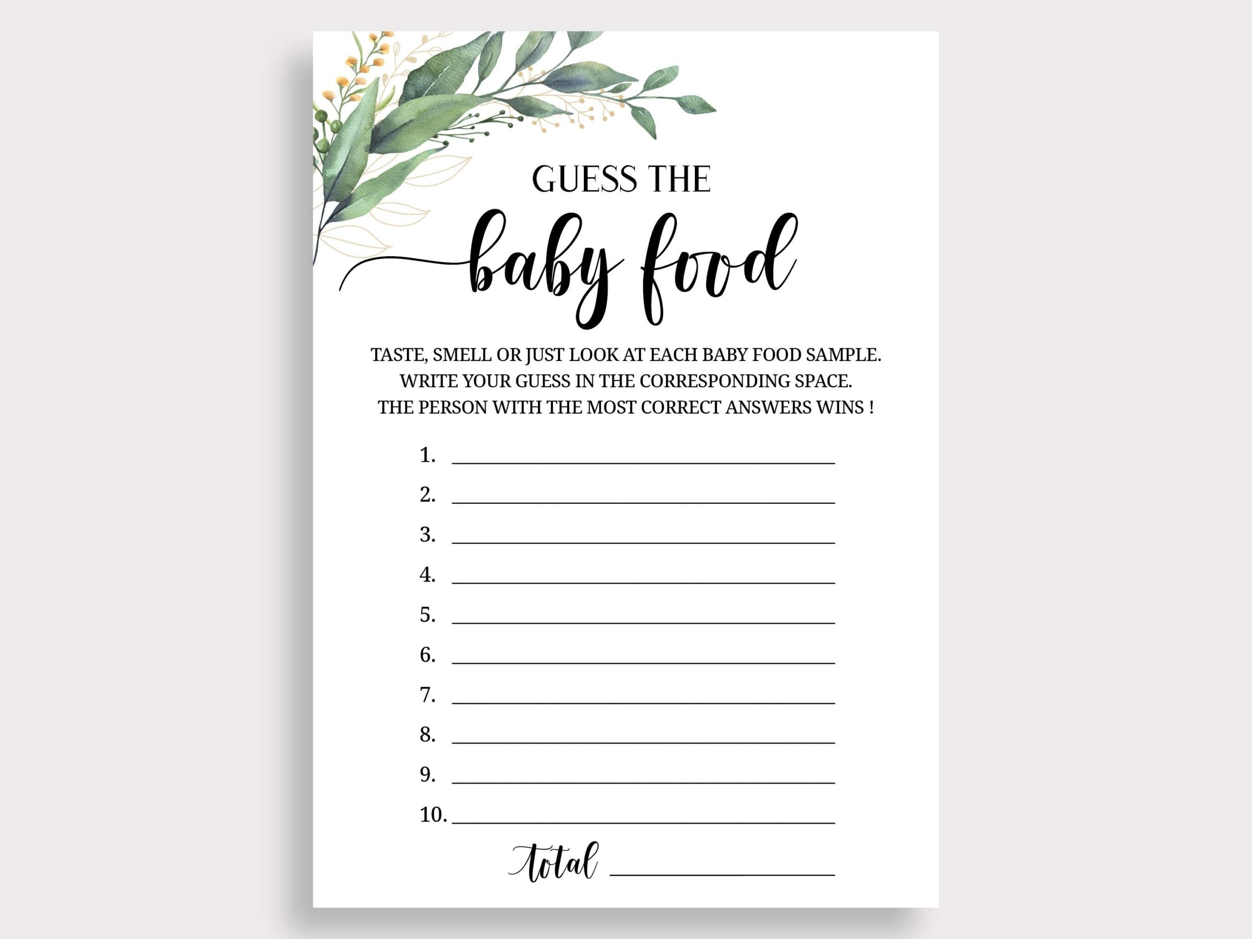 Guess The Baby Food Game Name That Baby Food Guessing Game Guess Food Game Greenery Food Shower Game Boho Baby Shower Printable C16 Etsy de