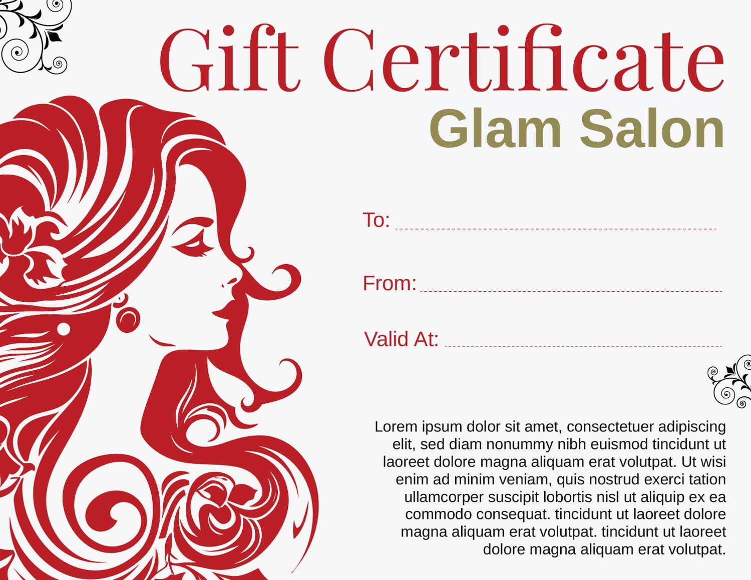 Minimal Red Hair Salon Gift Certificate Template Word Google Docs Adobe Illustrator Highfile