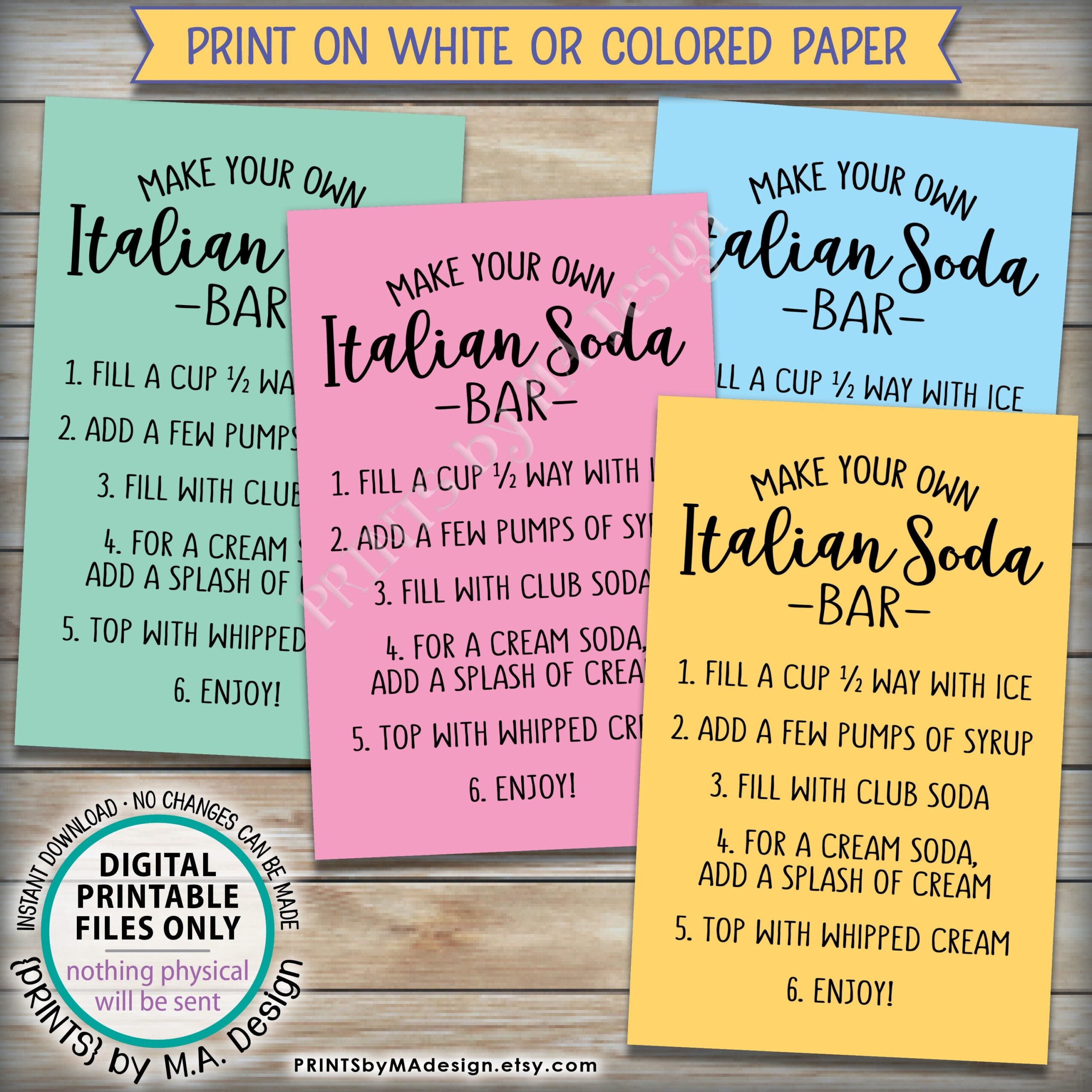 Editable Italian Soda Bar Sign Make Your Own Cream Soda One PRINTABLE 8×10 16×20 Sign With Custom Text Colors