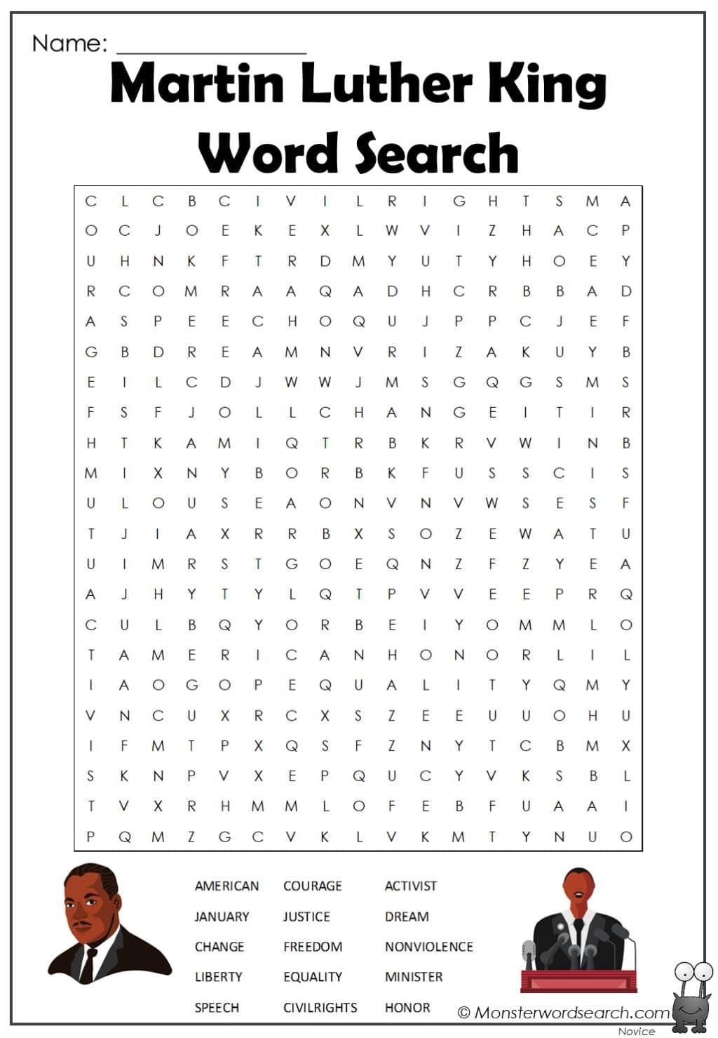 Martin Luther King Word Search Monster Word Search