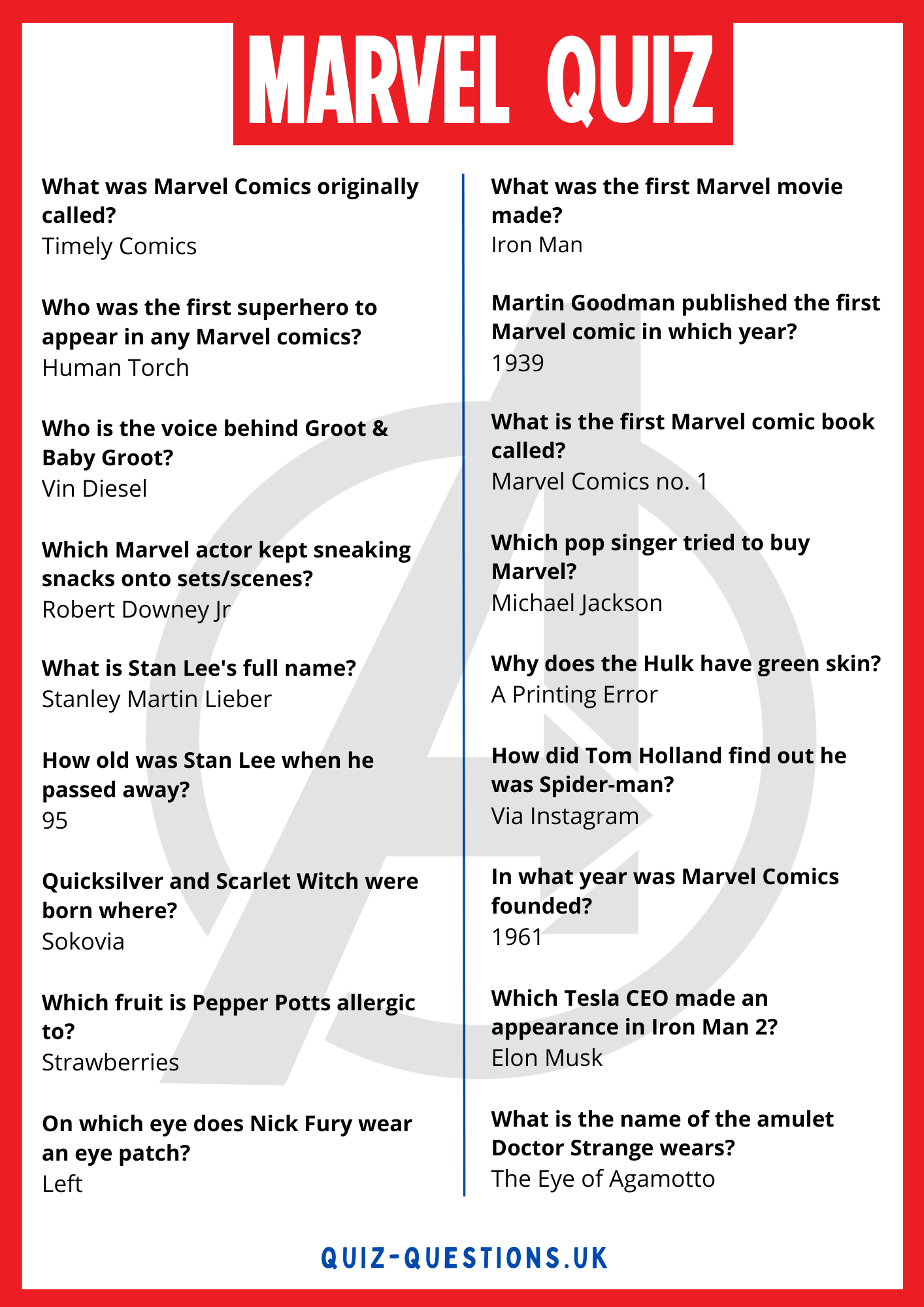 Marvel Movie Trivia Questions And Answers Printable 2025