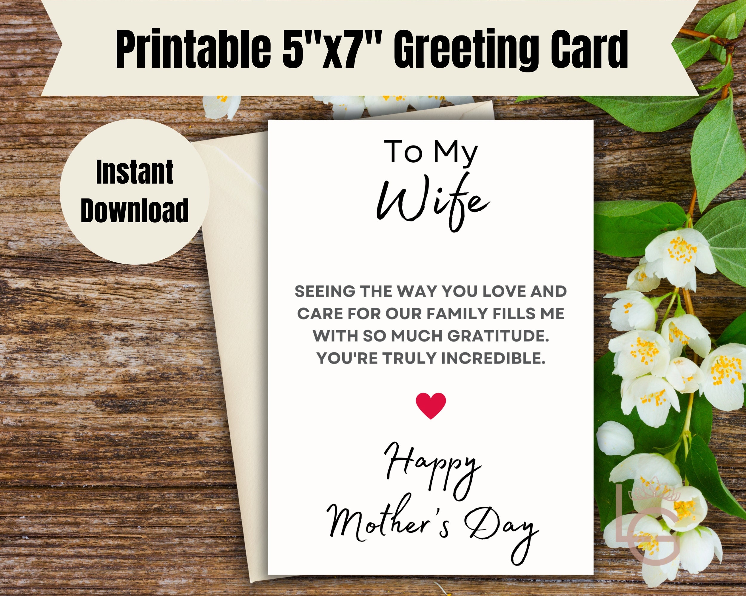 Printable Mother s Day Card For Wife Instant Download Mothers Day Card From Husband Etsy