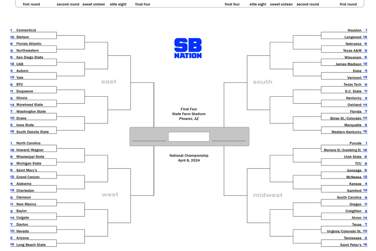 2024 NCAA Printable Bracket Schedule For March Madness SBNation