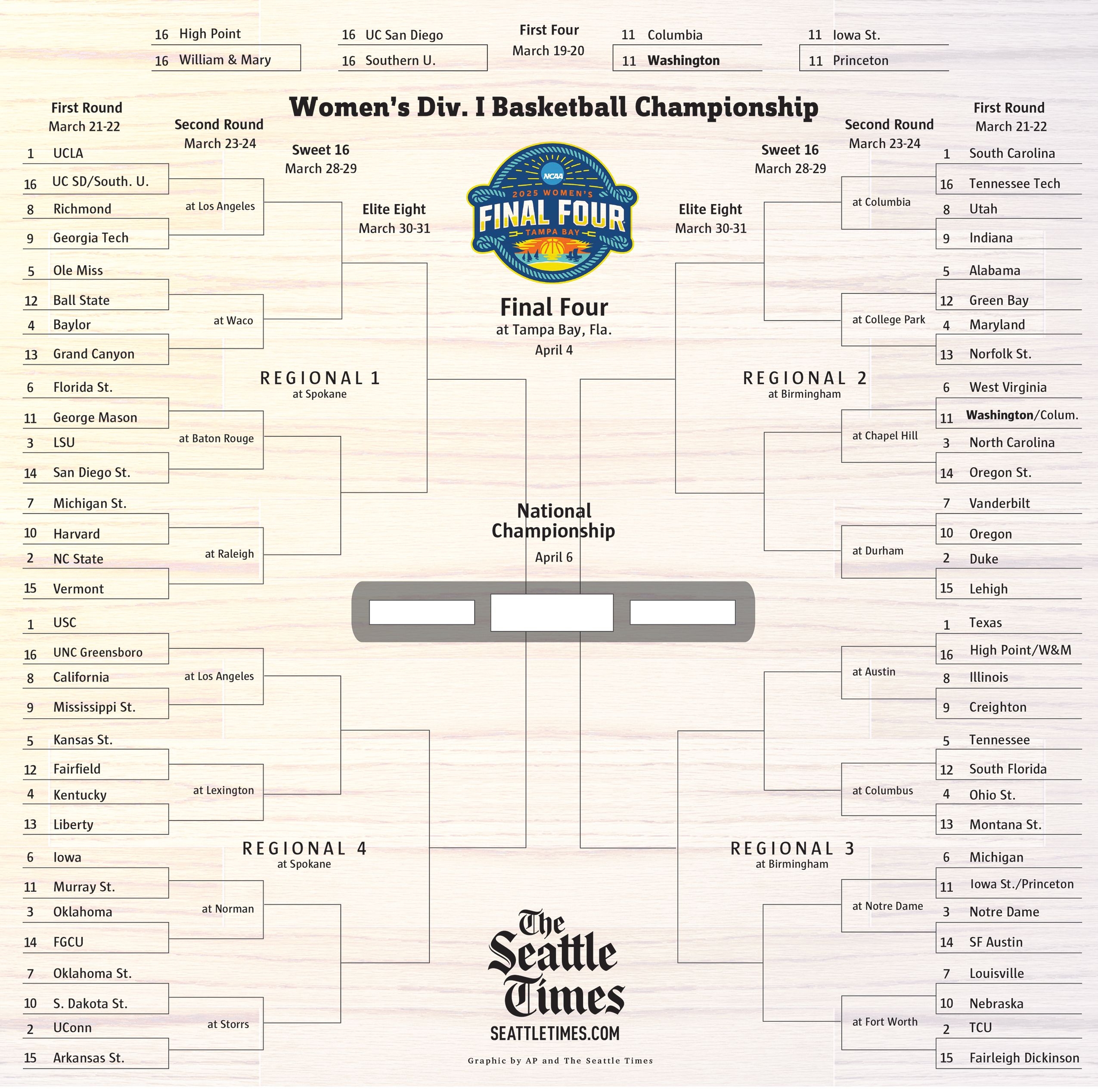 2025 NCAA Men s Women s Tournaments Download And Print Your Brackets The Seattle Times