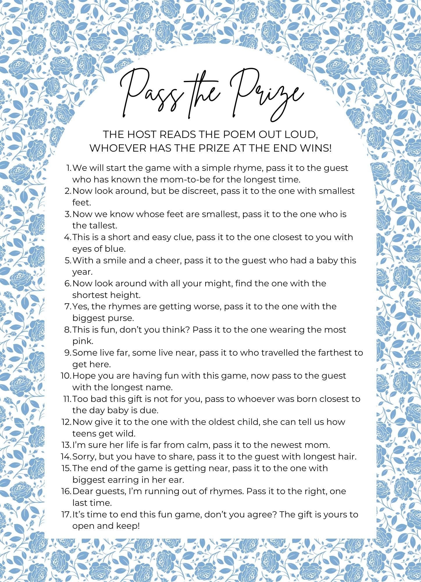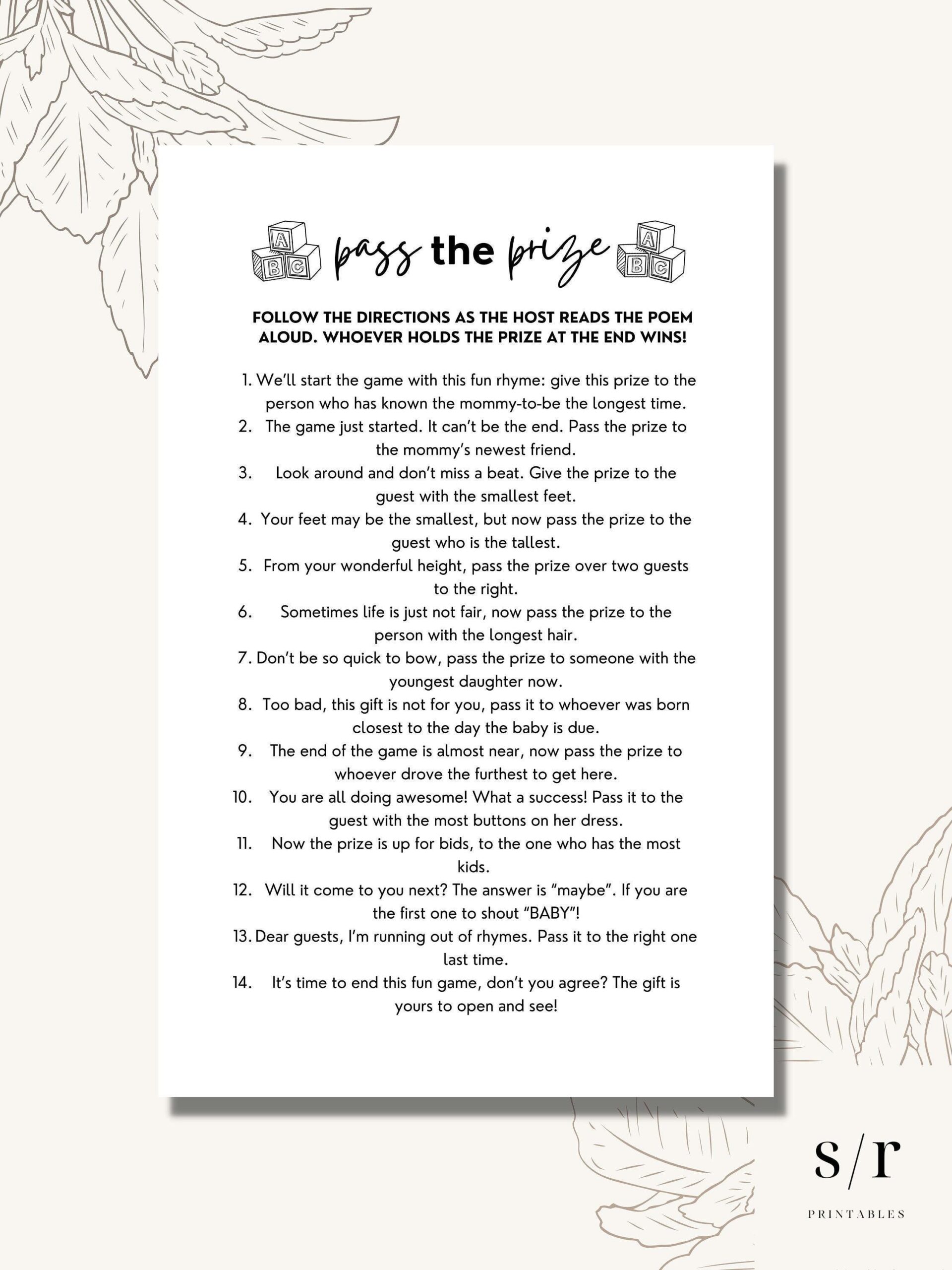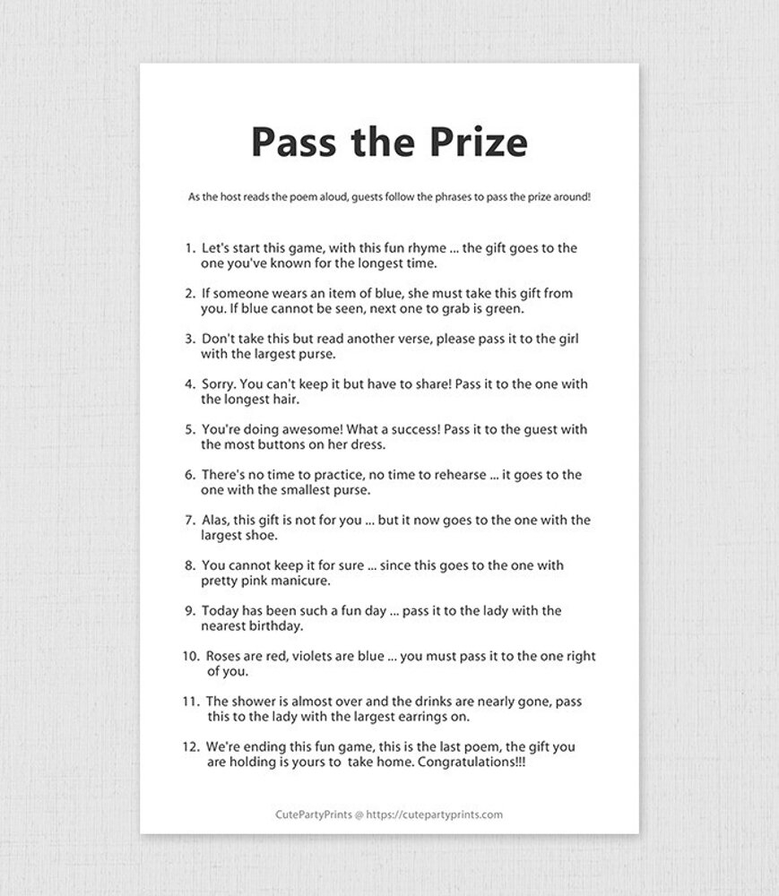 Pass The Prize Poem Game Printable Baby Shower Games Minimalist DIY Printable Instant Download PDF Etsy Canada
