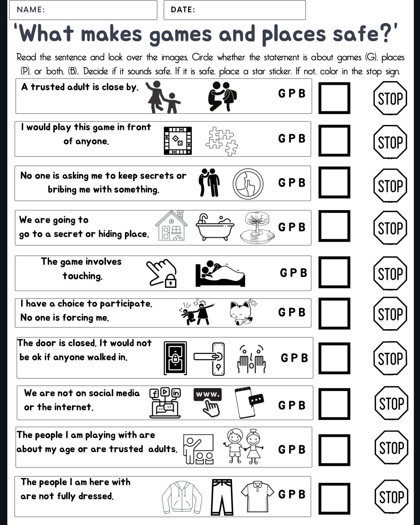 Therapy Printable Counseling Worksheet Therapy Worksheet Counseling Printable Children s Counseling Body Safety Safe Games Safe Touch Etsy