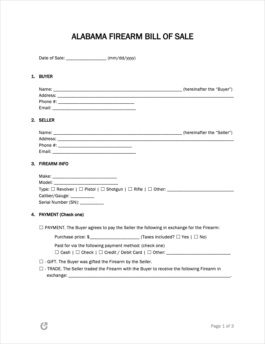 Free Alabama Firearm Bill Of Sale Form PDF WORD RTF