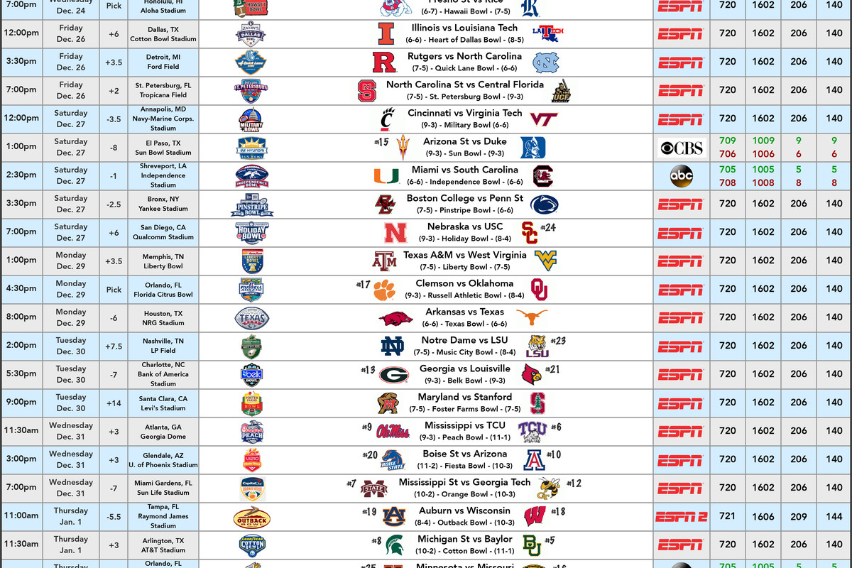 Complete Watch Guide For All 39 Bowl Games Cowboys Ride For Free