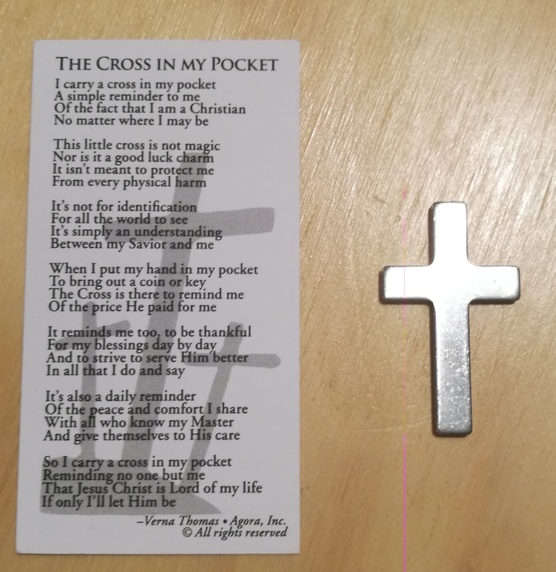 Cross In My Pocket Poem Card Etsy
