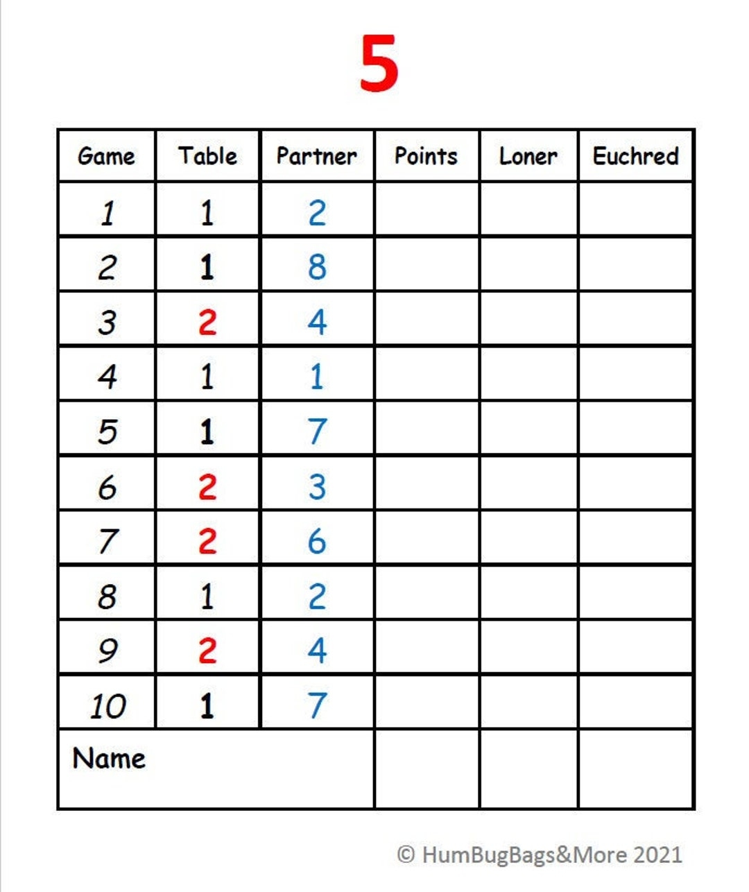8 player Euchre Tournament Score Sheet And Rotations PDF Printable Color Etsy